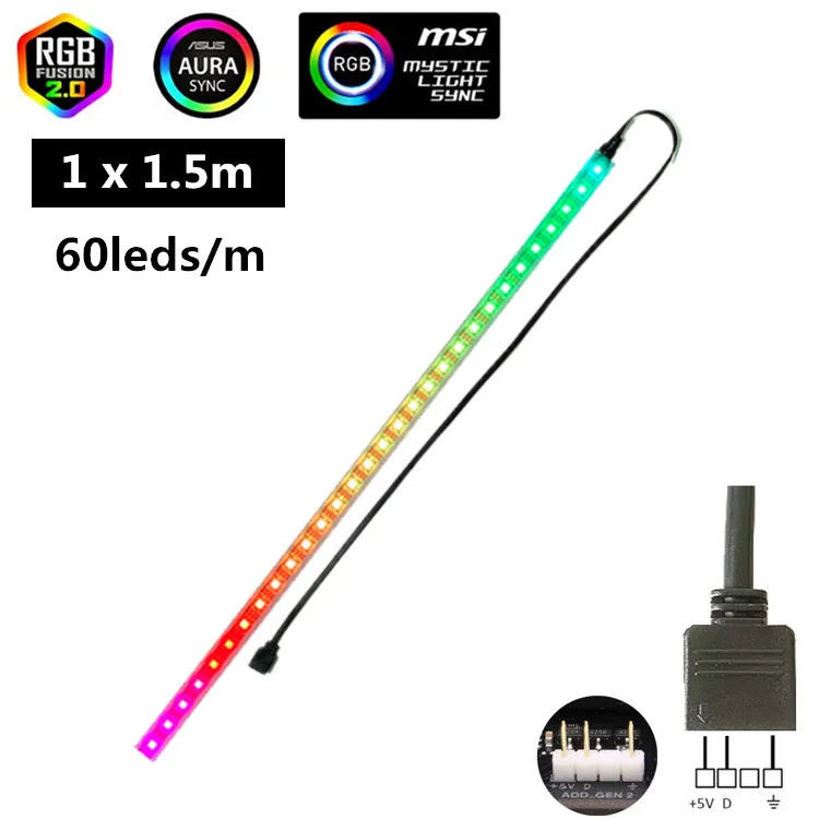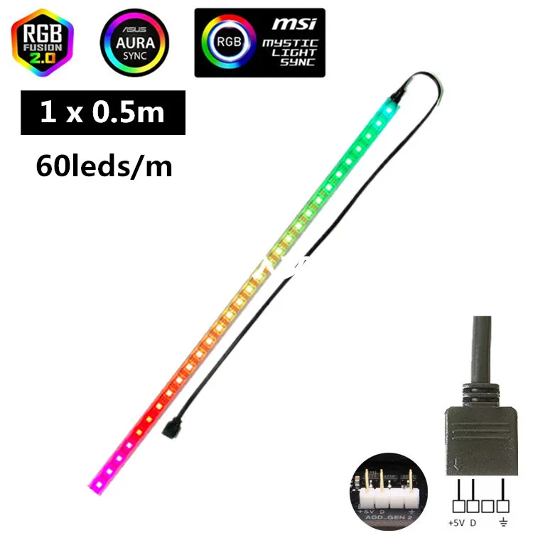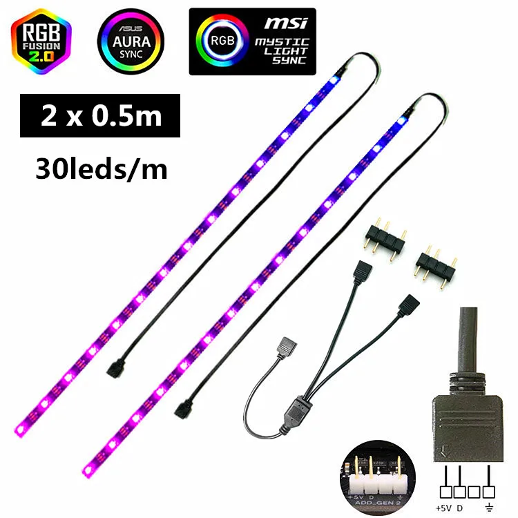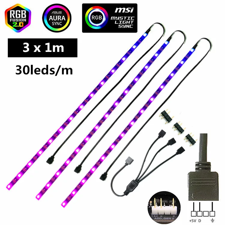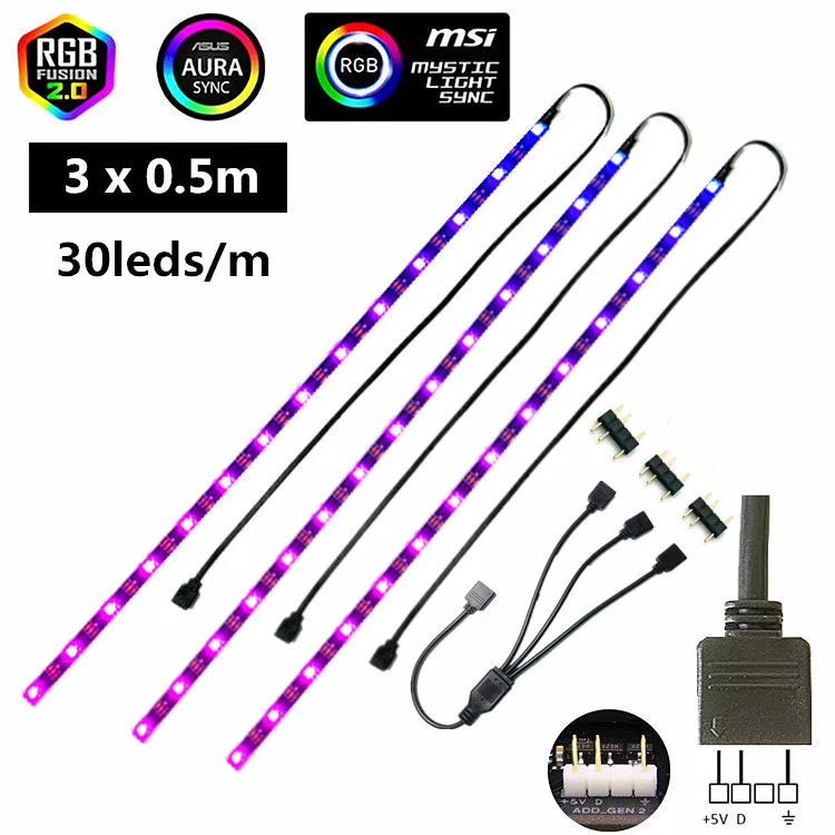 Boîtier PC lumière LED 5V 3PIN WS2812B bande de LED de Pixel adressable pour ASUS AURA SYNC / MSI Mystic Light / GIGABYTE RGB Fusion 2.0