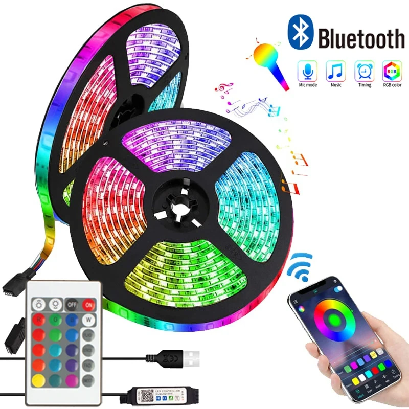 Les lumières LED sont livrées avec l’application Bluetooth et le contrôle IR. Vous pouvez facilement contrôler les lumières LED à changement de couleur RVB en téléchargeant l’application. Ou vous pouvez contrôler les bandes lumineuses LED à l’aide d’une télécommande IR.