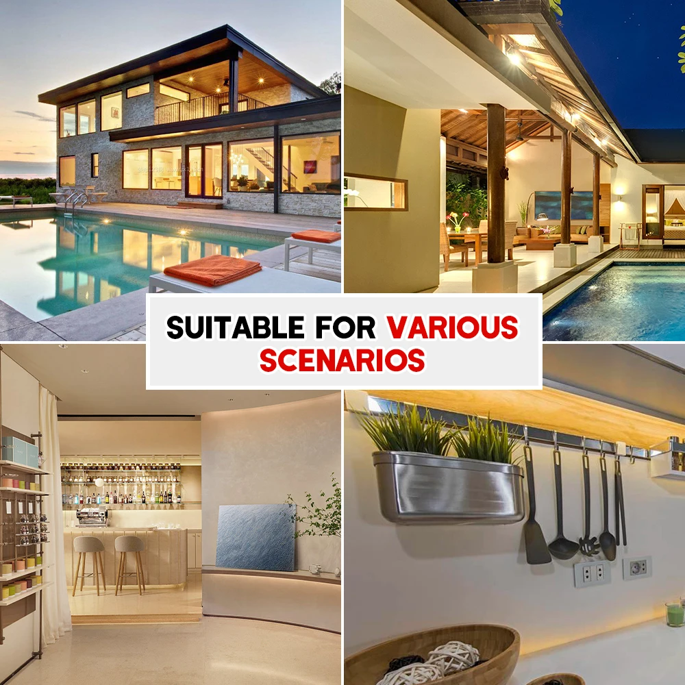 La qualité imperméable IP68 de la bande la rend capable de fonctionner sous l’eau, ce qui offre de nombreuses possibilités d’utilisation, comme dans les aquariums ou les piscines. De plus, la largeur de bande de seulement 9-10MM permet une installation discrète et flexible dans différents espaces extérieurs.