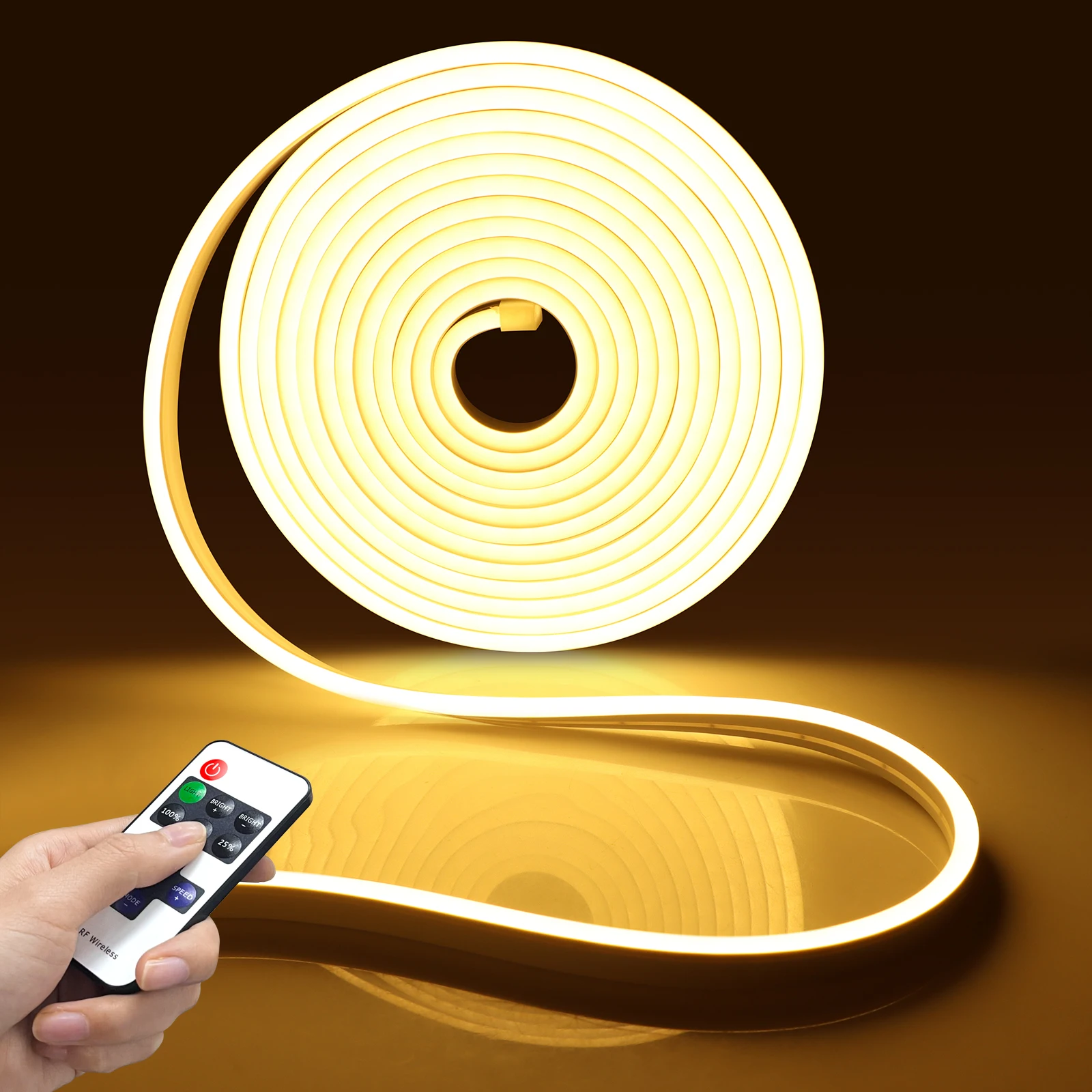 La télécommande RF vous permet de contrôler facilement la luminosité de la bande LED néon, offrant une grande flexibilité dans la création de l’ambiance souhaitée. De plus, cette bande LED consomme peu d’énergie tout en offrant un éclairage super-lumineux. Sa durée de vie de plus de 50 000 heures garantit une utilisation durable.