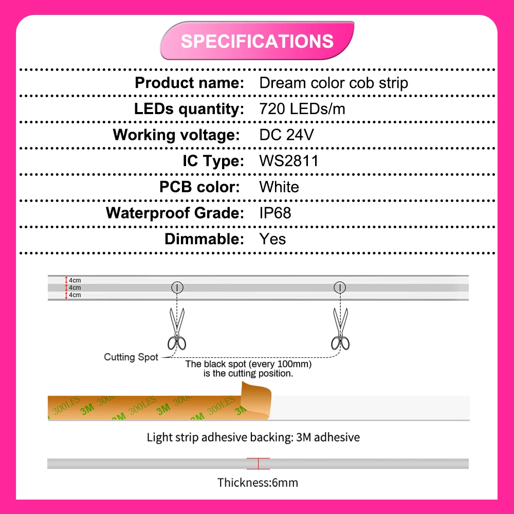 | Épaisseur de la bande de LED | 5 ~ 5.5mm |