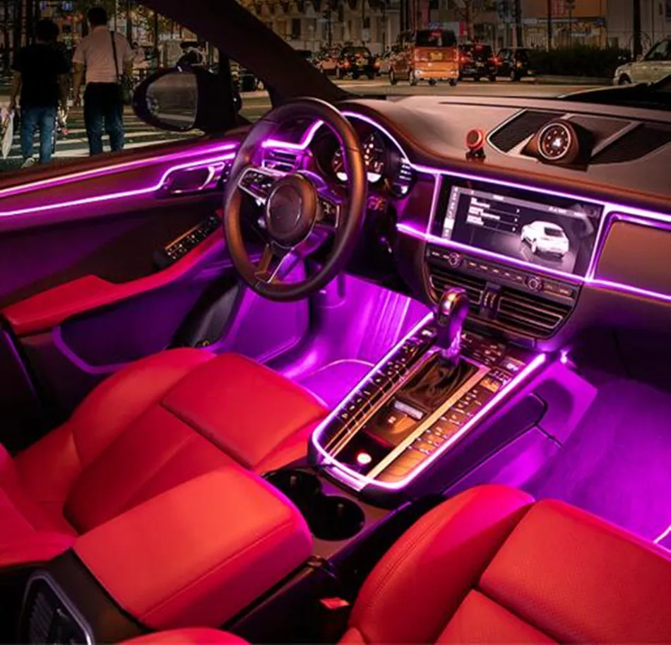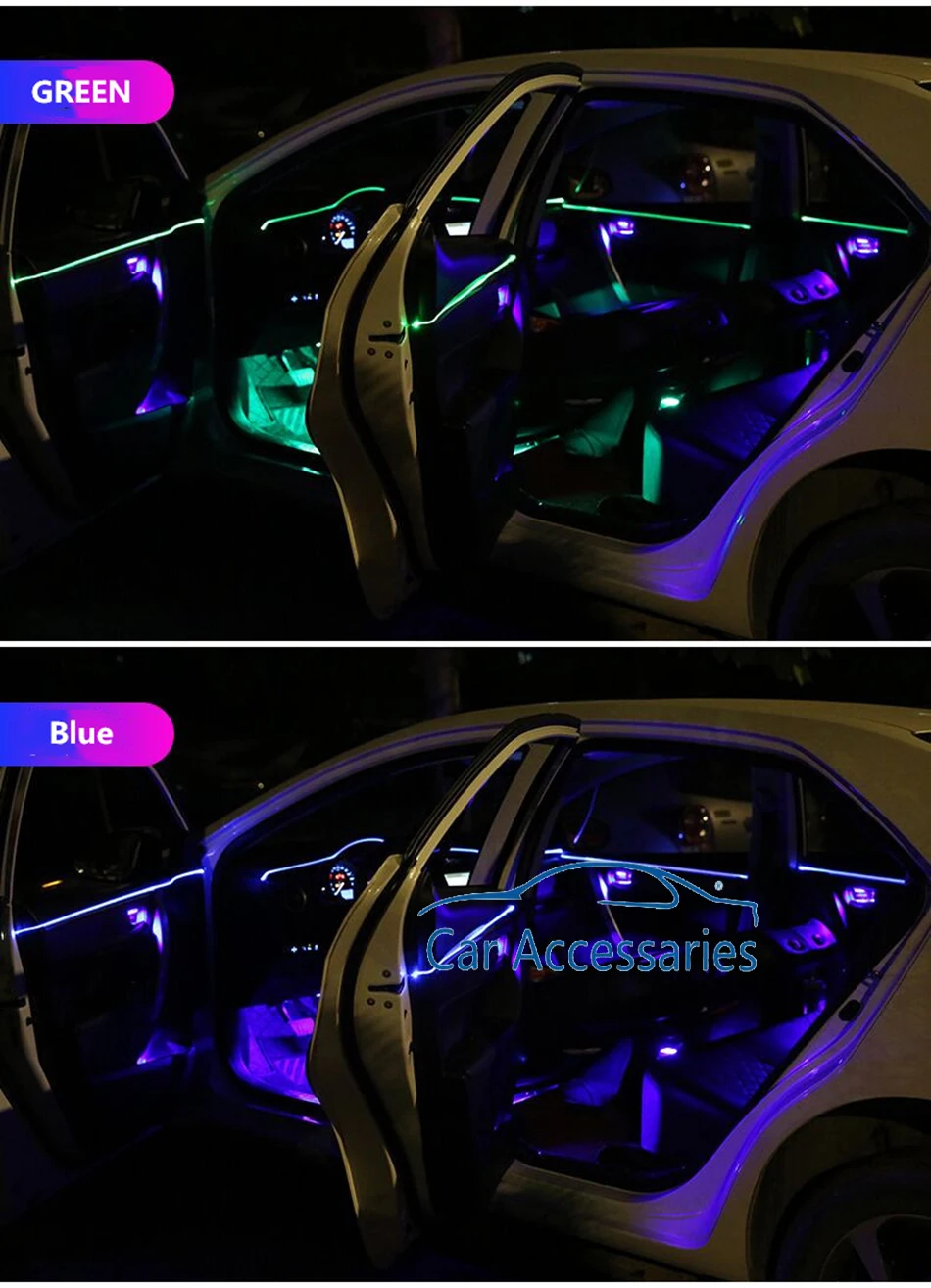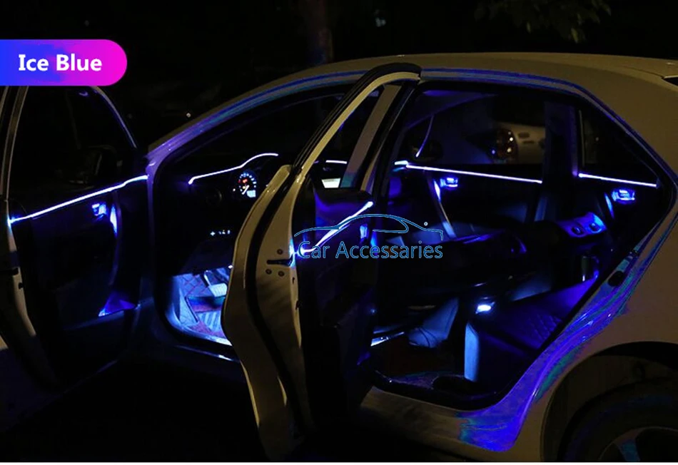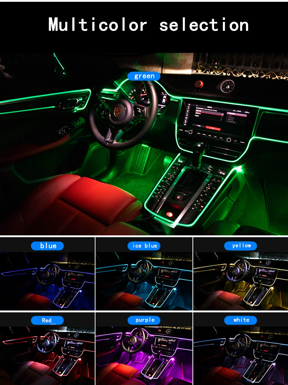 LED d’ambiance RVB 14 en 1 avec bande de fibre optique de voiture de décoration intérieure de 8M par App Control 12V lampes d’ambiance décoratives