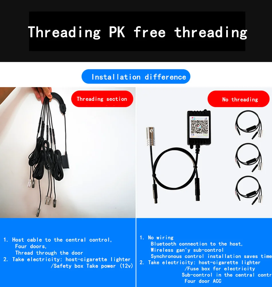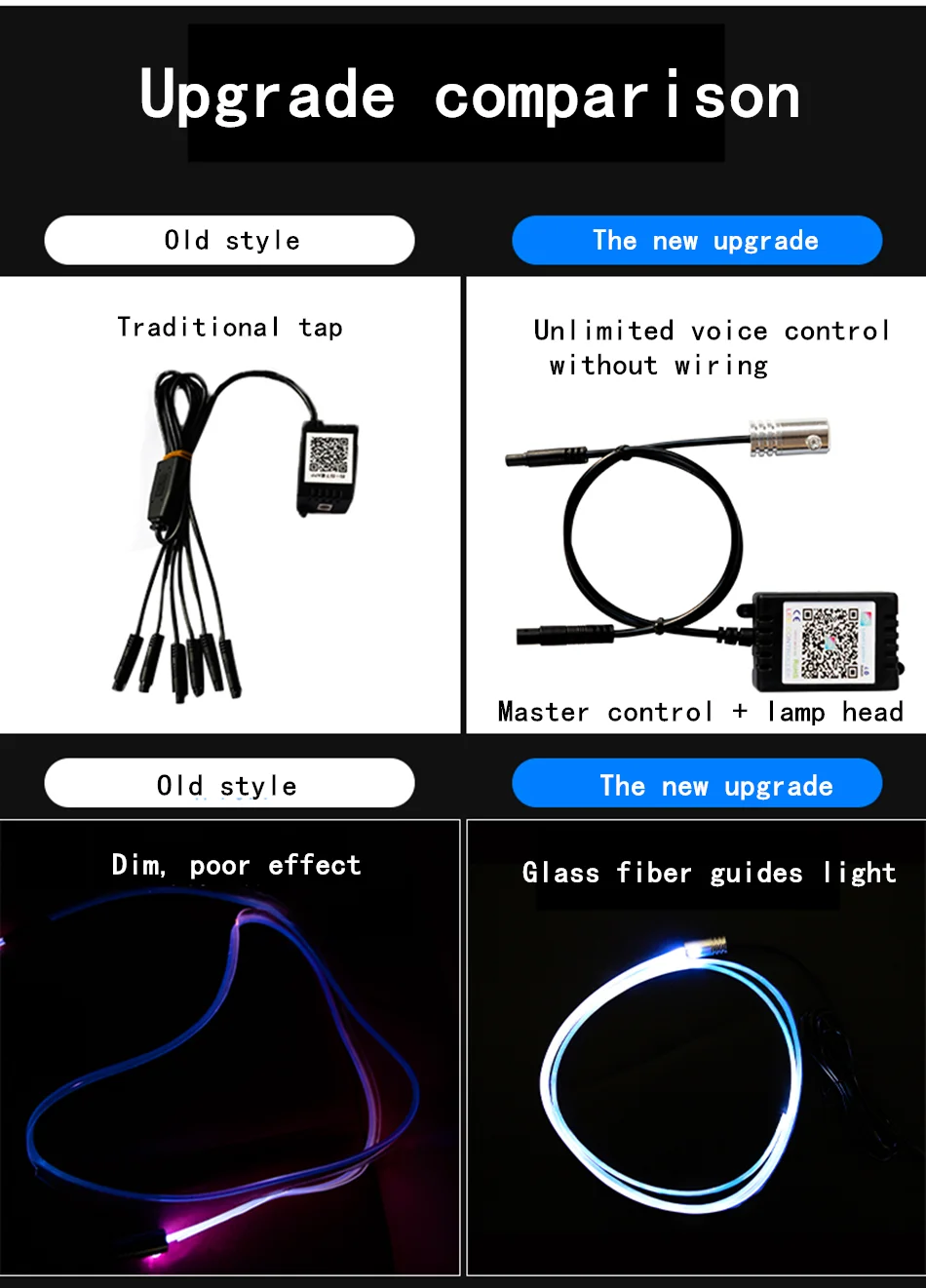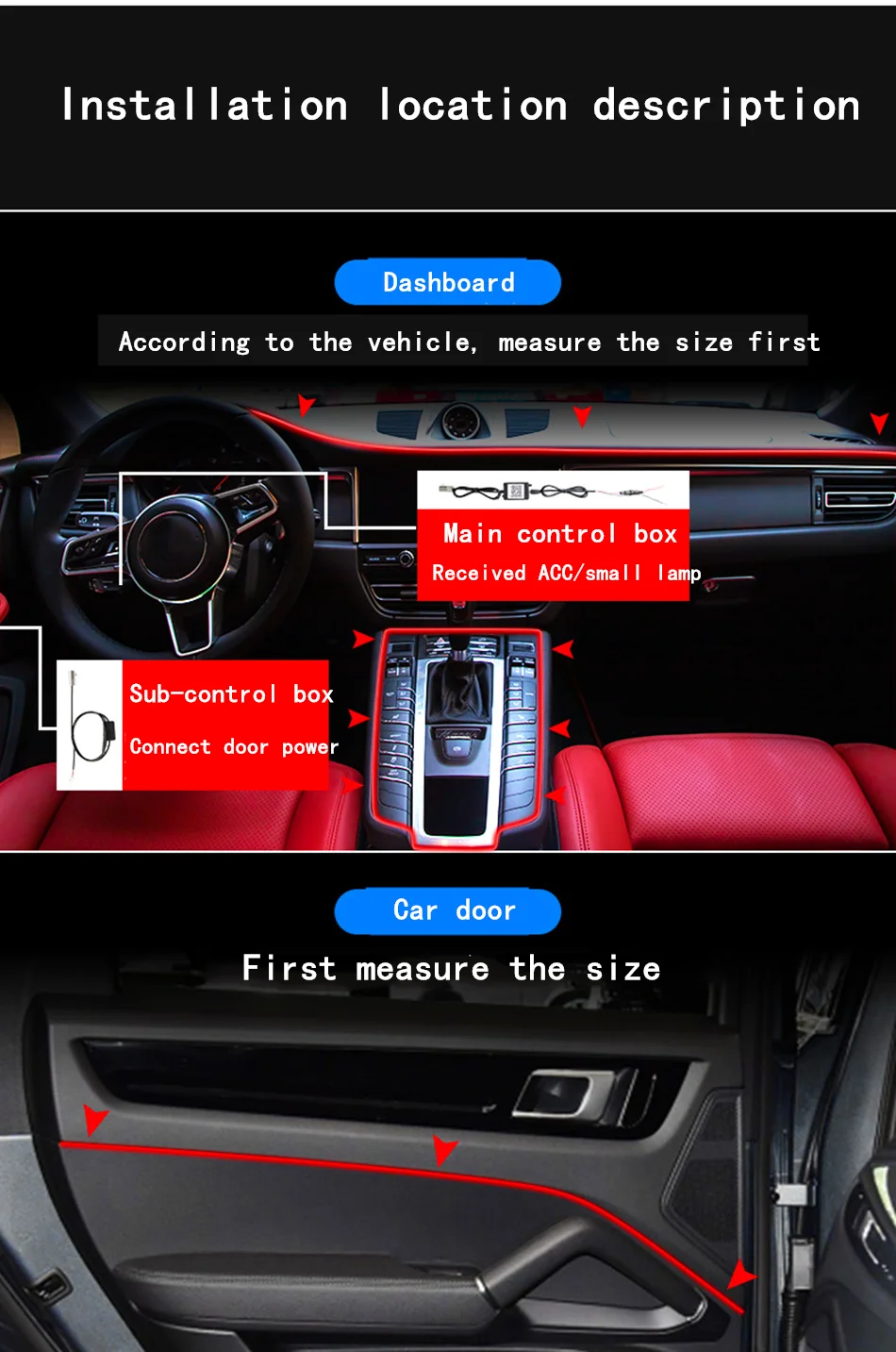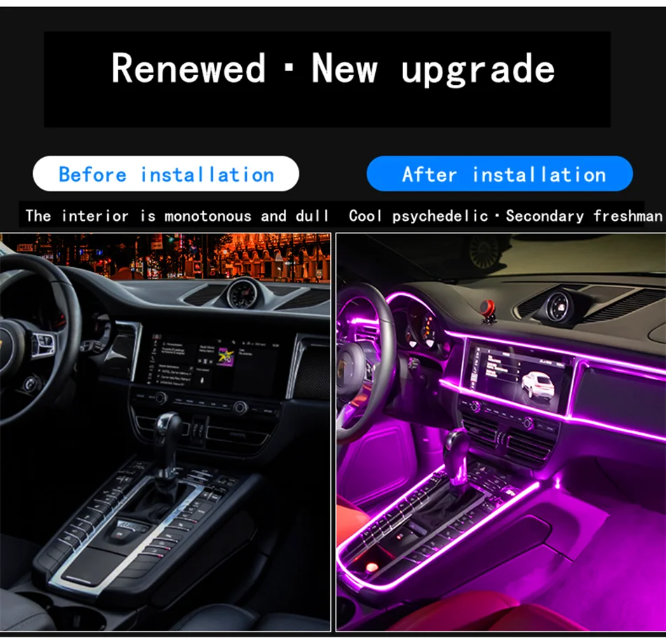 LED d’ambiance RVB 14 en 1 avec bande de fibre optique de voiture de décoration intérieure de 8M par App Control 12V lampes d’ambiance décoratives