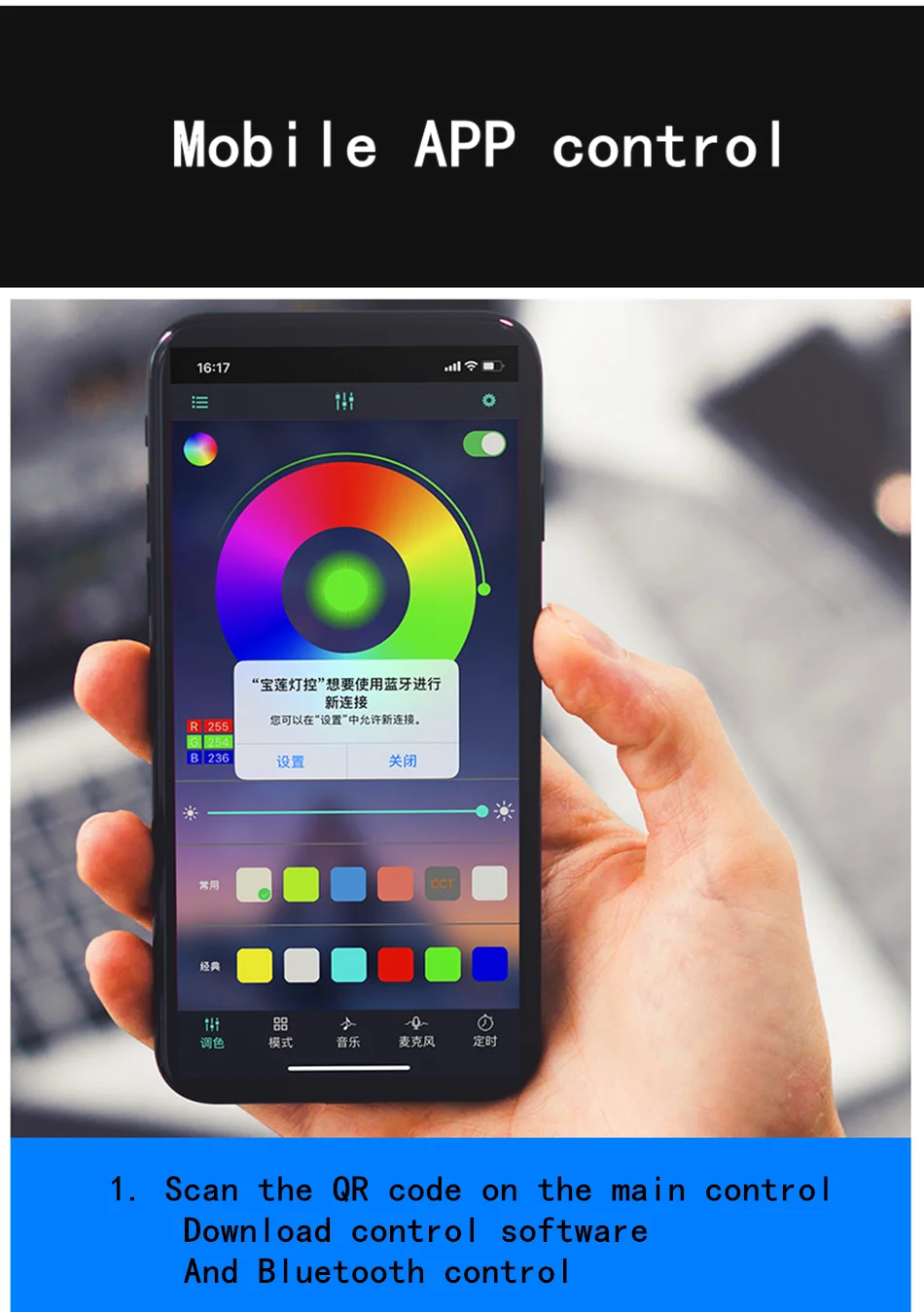 - Contrôle de l’application, plus facile à contrôler la lumière à tout moment, n’importe où