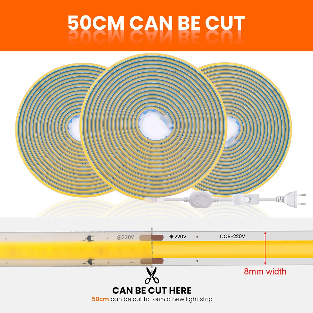 - La bande lumineuse LED COB offre une haute luminosité et un éclairage uniforme.