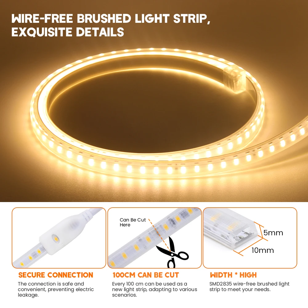 La bande lumineuse LED étanche avec prise UE est très simple à installer grâce à son design léger et sans fil.