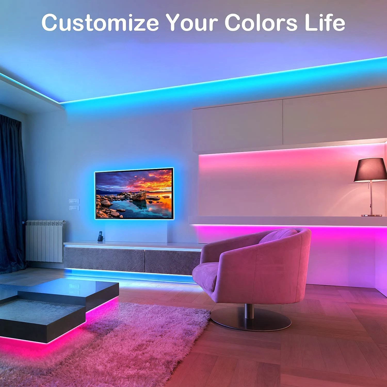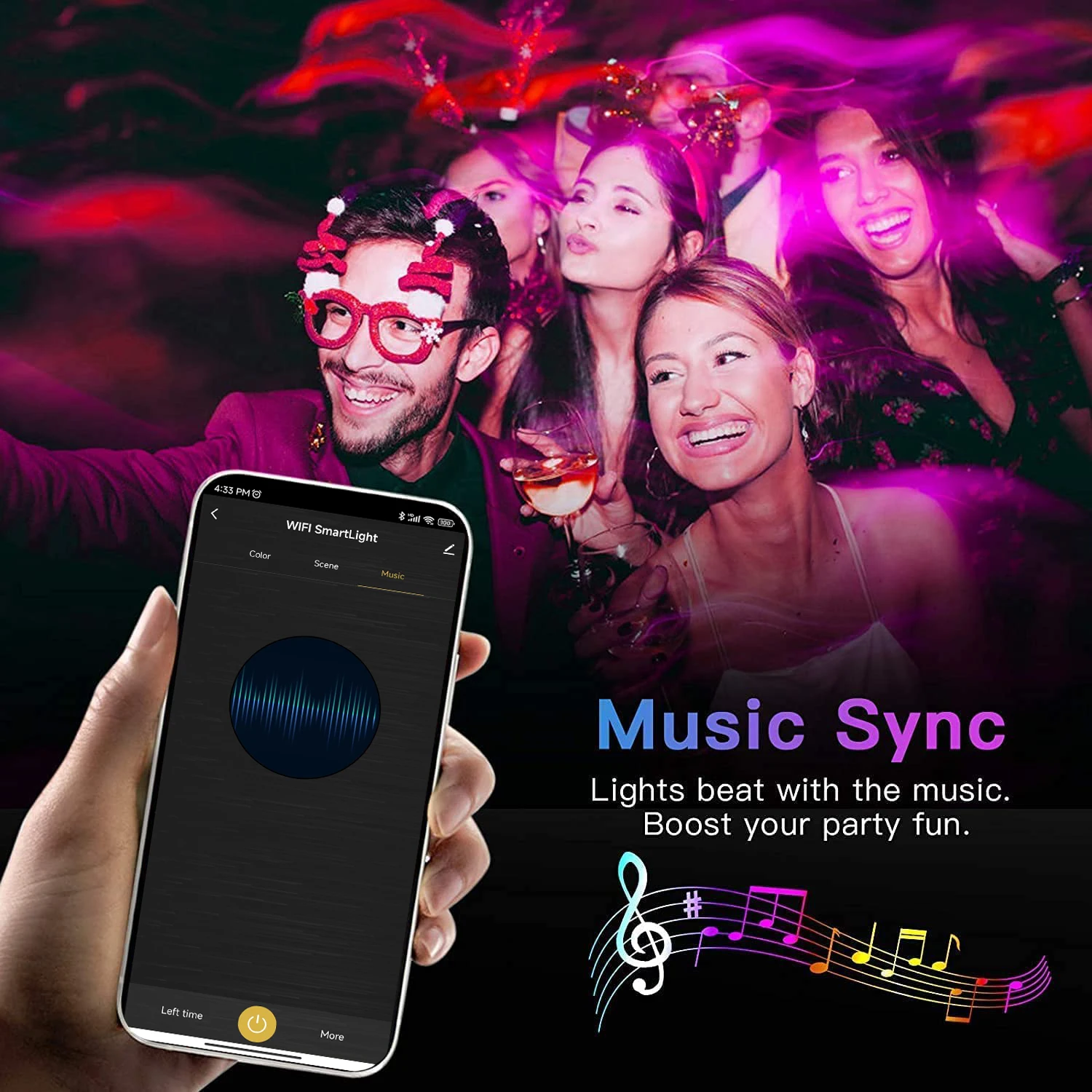 La bande lumineuse détecte la musique ambiante via le microphone du téléphone et change de couleur selon le rythme musical.