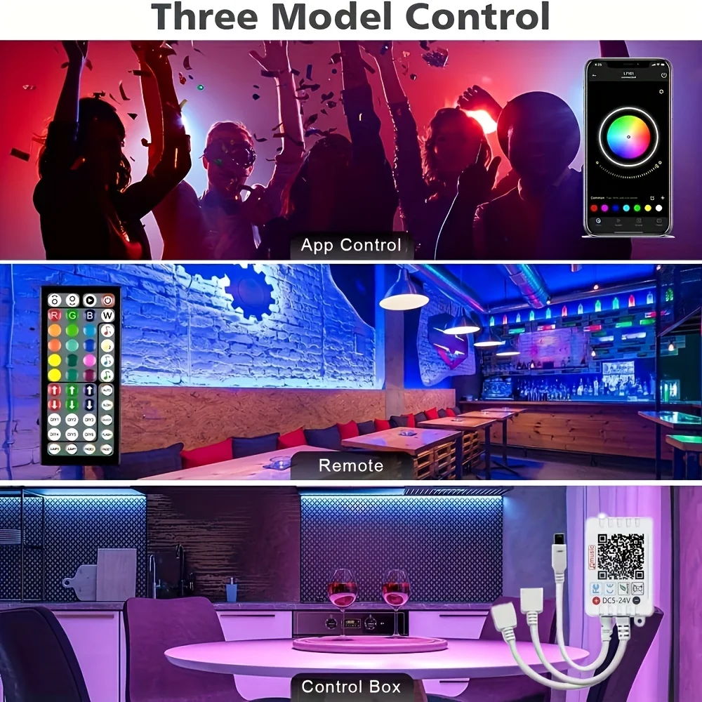 Avec cette bande lumineuse LED pour chambre à coucher, vous disposez d’options de double contrôle. Vous pouvez choisir la couleur et le mode d’éclairage (comme le flash, le saut, le fondu, etc.), ajuster la luminosité et la vitesse lumineuse. Grâce à la télécommande infrarouge et au contrôle de l’application via Bluetooth, vous pouvez créer votre propre couleur unique pour correspondre à l’atmosphère de votre maison. De plus, vous pouvez prévoir l’allumage ou l’extinction de la bande lumineuse à une heure spécifique, pour profiter d’une vie à la maison intelligente.