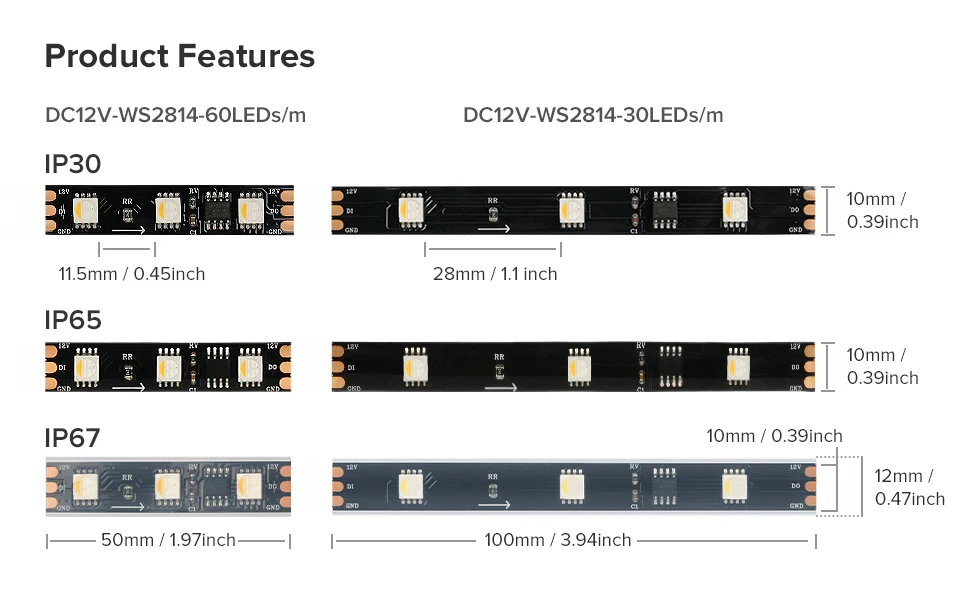11, grade de protection: IP30-No étanche, pour une utilisation en intérieur. Tube IP67-Silicone, besoin de resceller après coupe, utilisation extérieure.