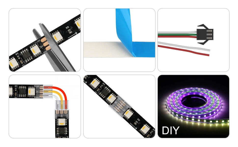 10, Emballage: 5 m/rouleau, 12V ou 24V WS2814 RGBW Bande + 3 broches SM Connecteur.