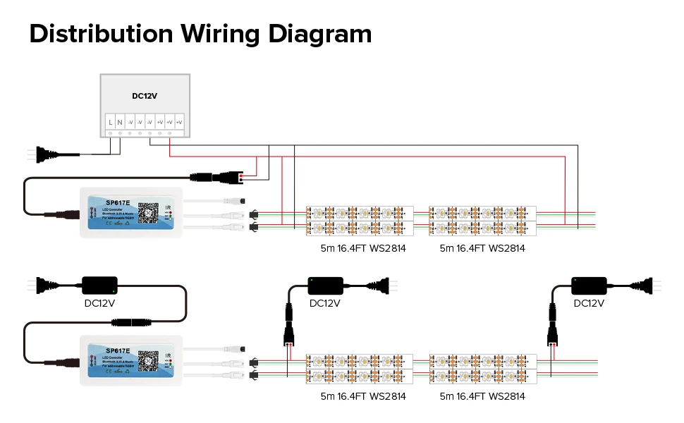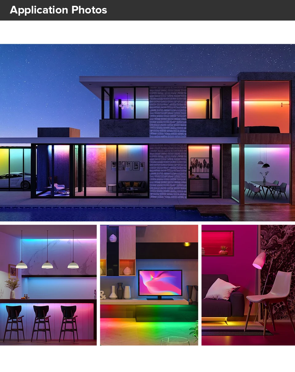 Éclairage de couleur de rêve, le contrôleur Bluetooth SP617E/SP630E/SP634E peut apparaître coloré rideau/débit d’eau/goutte de pluie/saut flash et ainsi de suite des centaines d’effet d’éclairage.