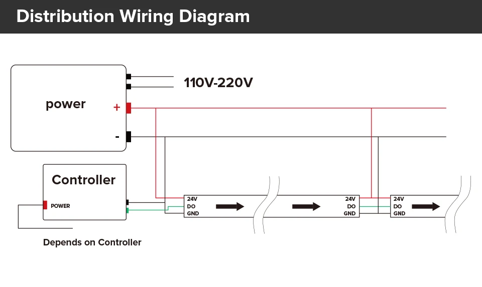 WS2814 doit utiliser une alimentation DC12V ou DC24V et un contrôleur de pixels pour contrôler!