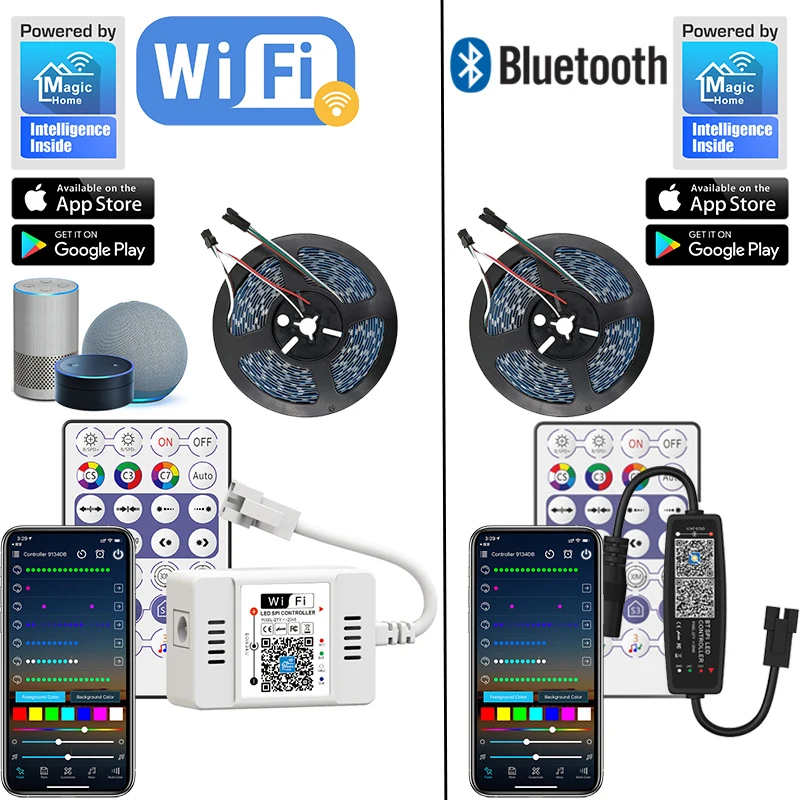 Les bandes lumineuses peuvent être contrôlées à l’aide de l’application Magic Home Pro ou de la télécommande