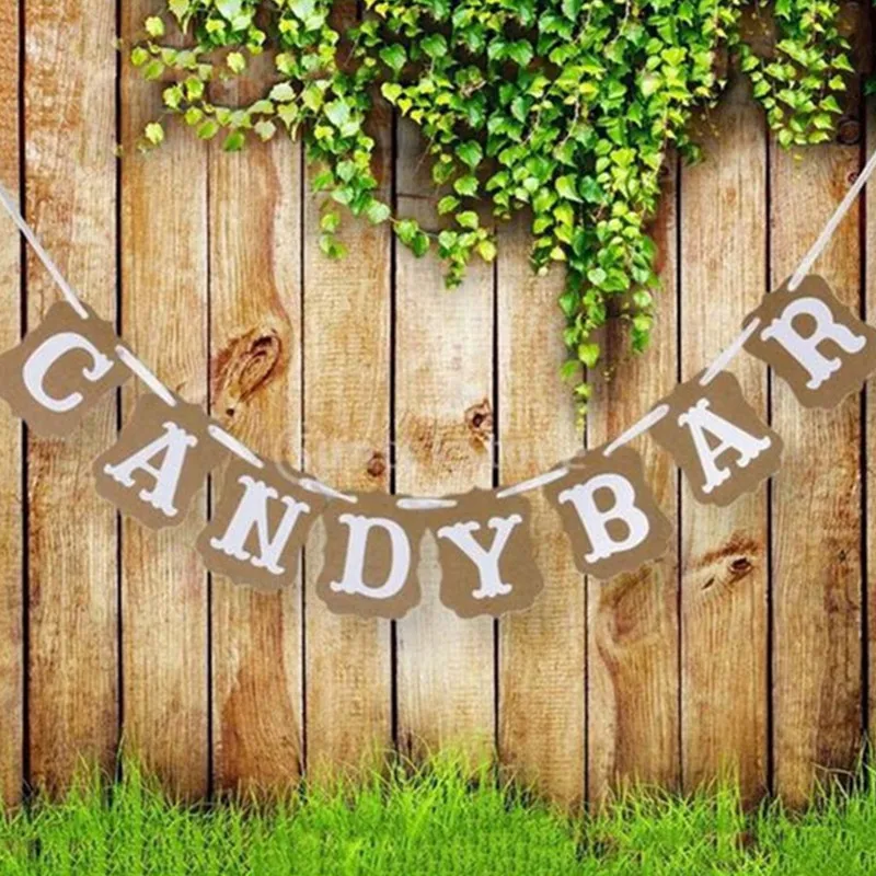 Lettres CANDY BAR Kraft Papier Carton Banderole Bannière Fête Tirer Fleurs pour Mariage Anniversaire Baby Shower Fête Drapeau Personnalisé