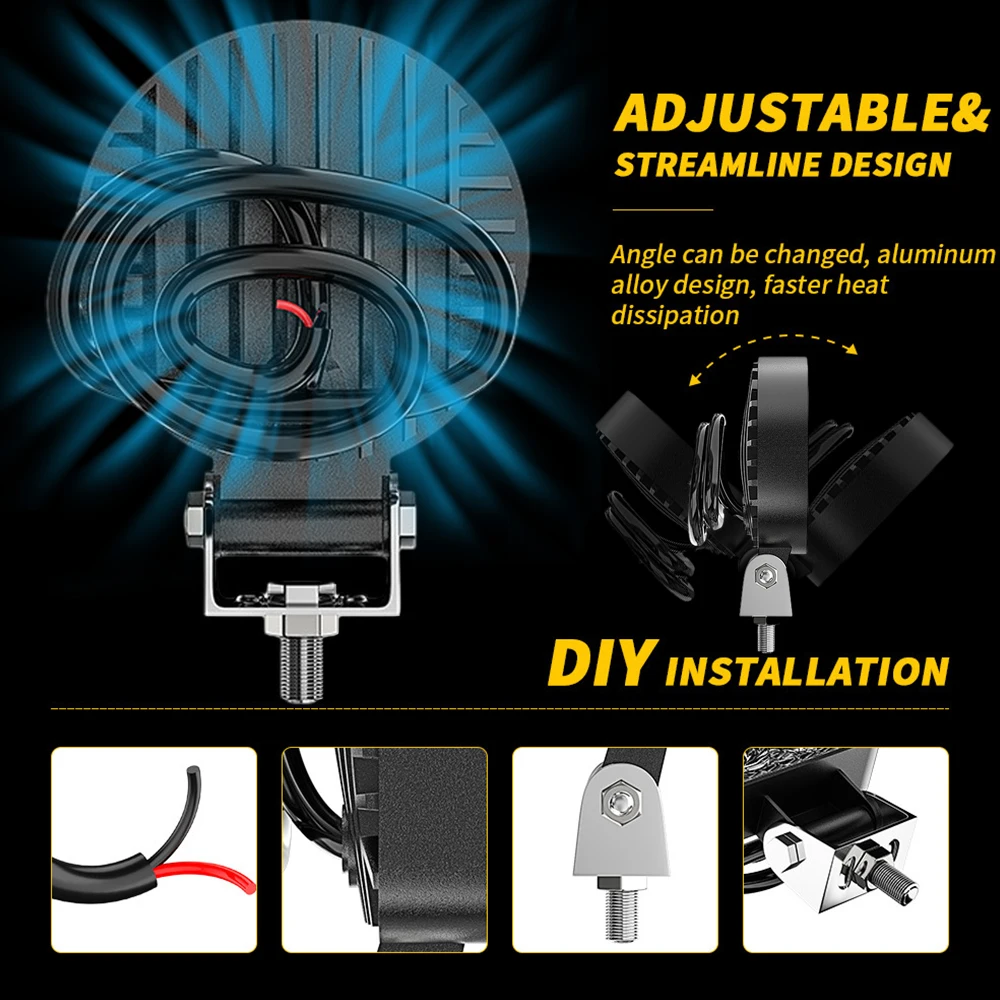 Cette lampe de travail LED 2.5 pouces 8000LM est un excellent accessoire pour les véhicules tels que les camions et les SUV. Elle présente de nombreuses caractéristiques intéressantes, notamment sa luminosité élevée même en plein jour, sa faible consommation d’énergie et son design adapté à la dissipation thermique. De plus, sa distance d’irradiation effective est plus longue que celle des ampoules halogènes ordinaires, ce qui en fait un choix idéal pour les conducteurs qui souhaitent améliorer leur visibilité sur la route.