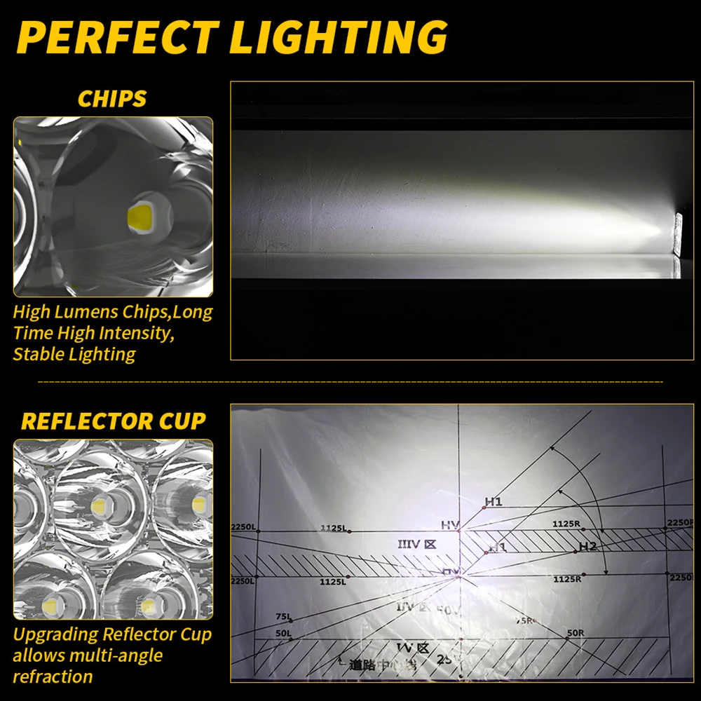 En ce qui concerne les paramètres techniques, cette lampe de travail est équipée d’une puissance LED de 5D 8000LM et d’une lentille en PMMA. Elle bénéficie également d’une coque en alliage d’aluminium moulé sous pression, ce qui la rend résistante à la corrosion, imperméable, anti-poussière et performante en termes de résistance aux chocs. Son indice d’étanchéité est IP68, ce qui signifie qu’elle peut être utilisée dans des conditions d’eau et de poussière extrêmes sans problème.