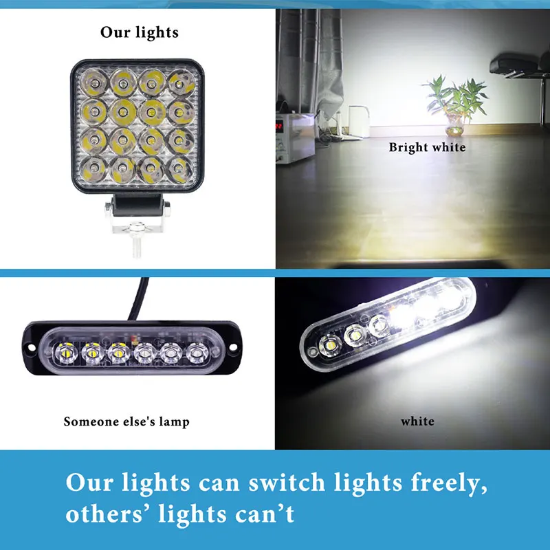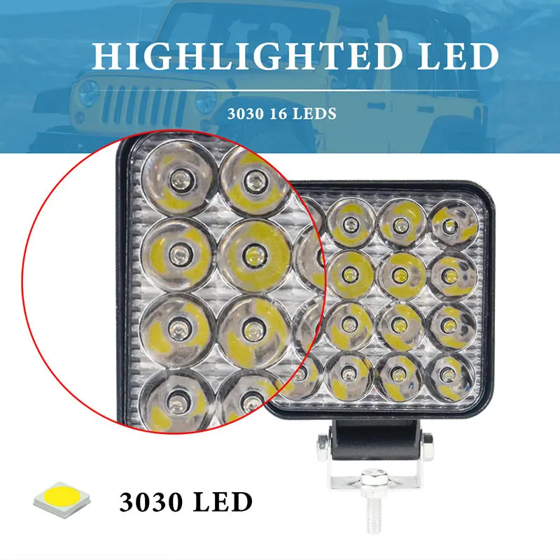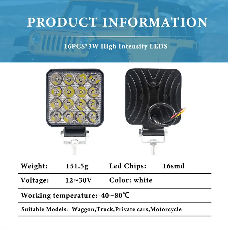 La barre de travail à LED pour voiture est un accessoire budgétaire qui offre une puissance de 16SMD 48W. Elle fonctionne avec une tension de 12V-24V et dispose de lumens théoriques de sortie de 4800 LM. Les lumens de fonctionnement de sortie sont de 3800 LM. Equipée de 16 LED de 3W chacune, cette barre de travail propose trois modes de faisceau : tache, faisceau de crayon et faisceau d’inondation. Elle peut être utilisée dans une large gamme de températures, allant de -40°C à +85°C. Avec un indice de protection IP67, ce produit est résistant à l’eau et aux intempéries. Il est fabriqué avec un boîtier en aluminium moulé sous pression, un support en acier inoxydable et une lentille en PC. Cette barre de travail LED peut être utilisée sur différents types de véhicules tels que les SUV, 4WD, Jeep, camions, pick-up, tracteurs, bateaux, bus, utilitaires de sport, UTE et ATV. De plus, elle peut également être utilisée dans l’agriculture, l’exploitation minière, l’industrie, le commerce et d’autres domaines grâce à sa faible consommation d’énergie.