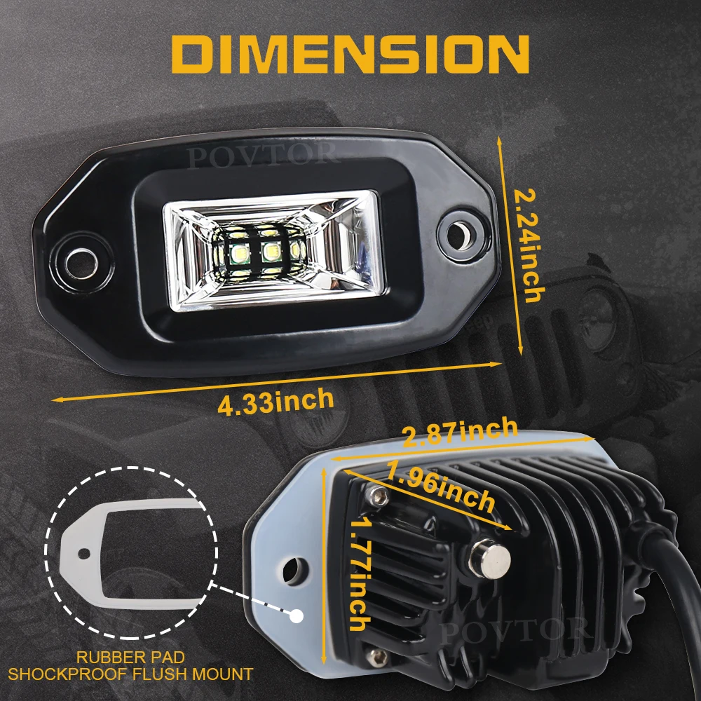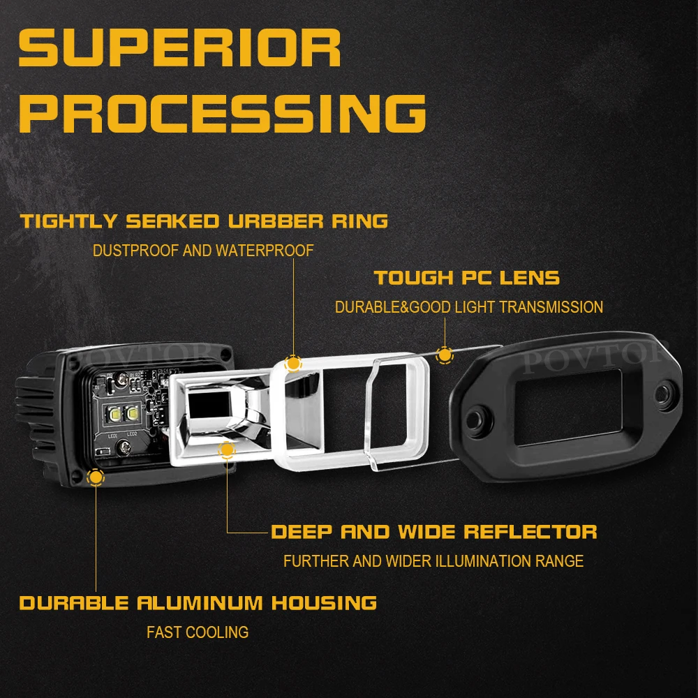 2 pcs Barre de lumière de travail LED 4X4 Offroad 12V Accessoires de voiture Ampoule de faisceau d’inondation de moto 10W 6000K Lumière de conduite blanche