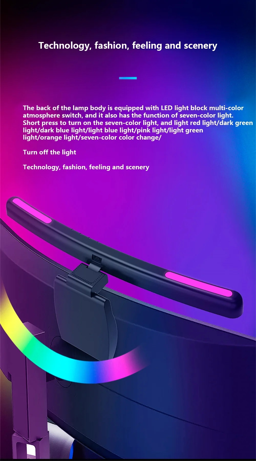 - Lumière de fond multicolore : la structure suspendue permet à la lampe suspendue d’être facilement fixée sur le dessus de l’écran, maximisant l’espace sur le bureau, et réalisant les effets de la lumière idéaux pour créer un environnement de travail immersif