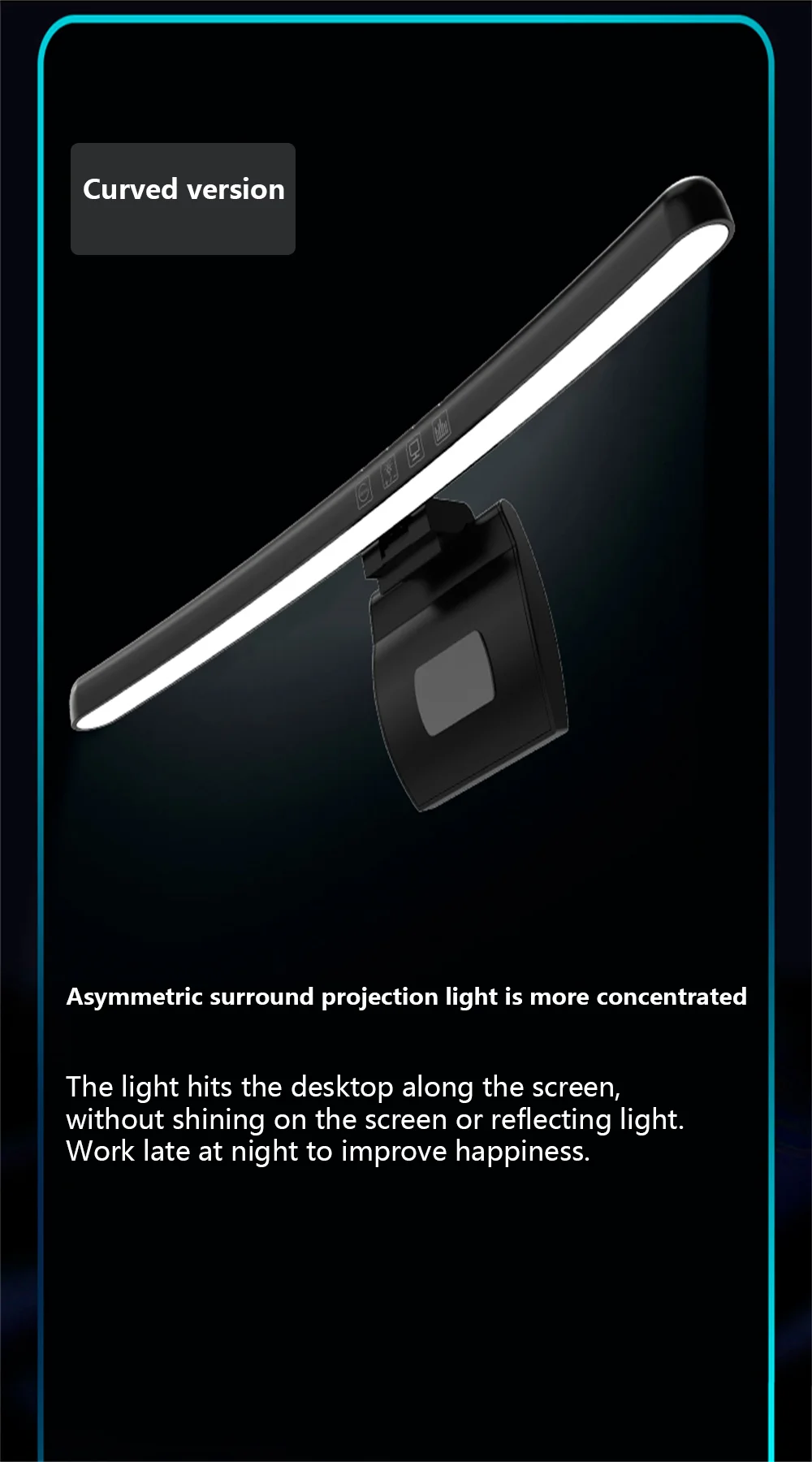 La barre lumineuse USB incurvée pour écran de bureau est un accessoire pratique pour améliorer votre espace de travail. Avec son intensité variable et sa conception d’éclairage qui ménage les yeux, cette lampe est idéale pour la lecture électronique, le travail et le jeu sur ordinateur.