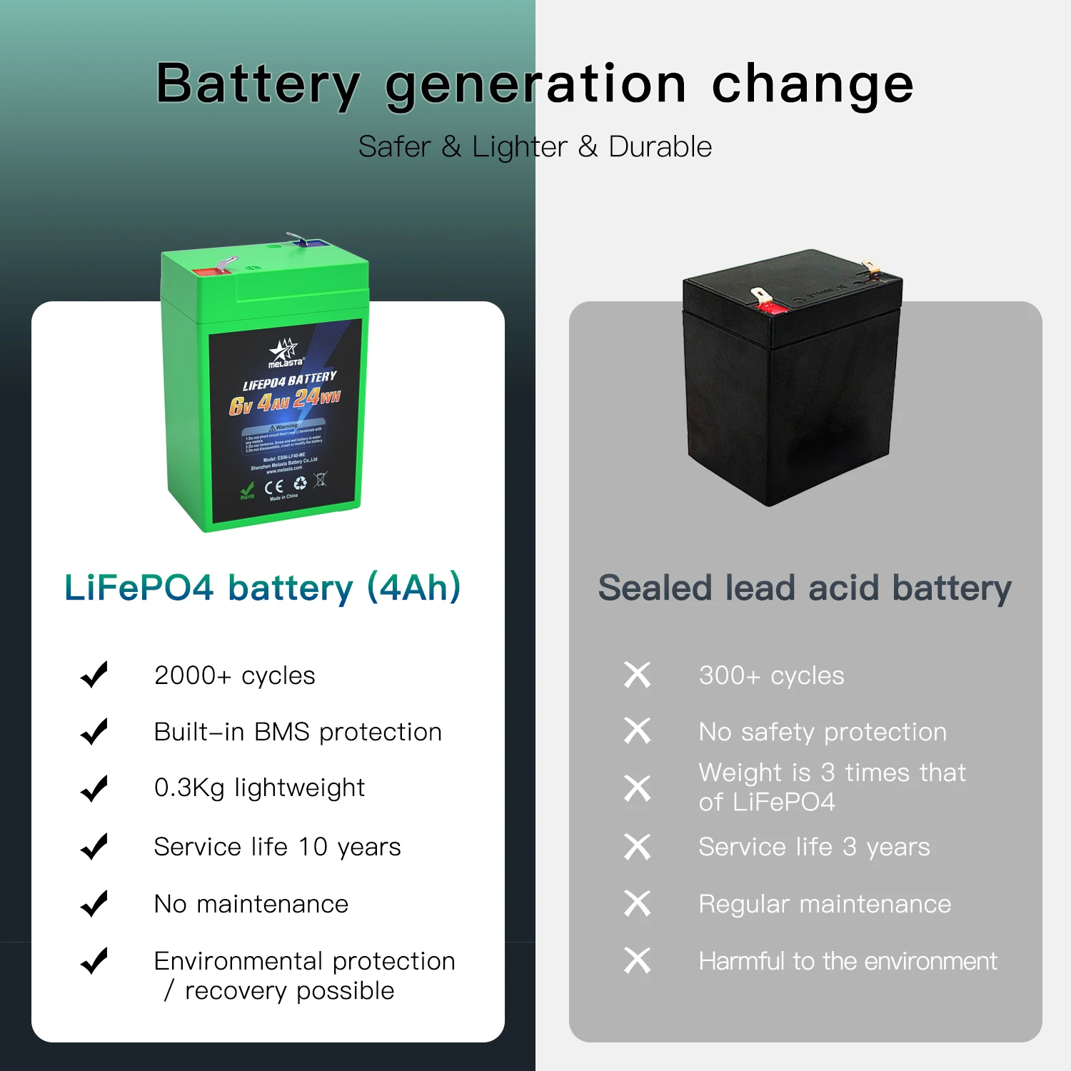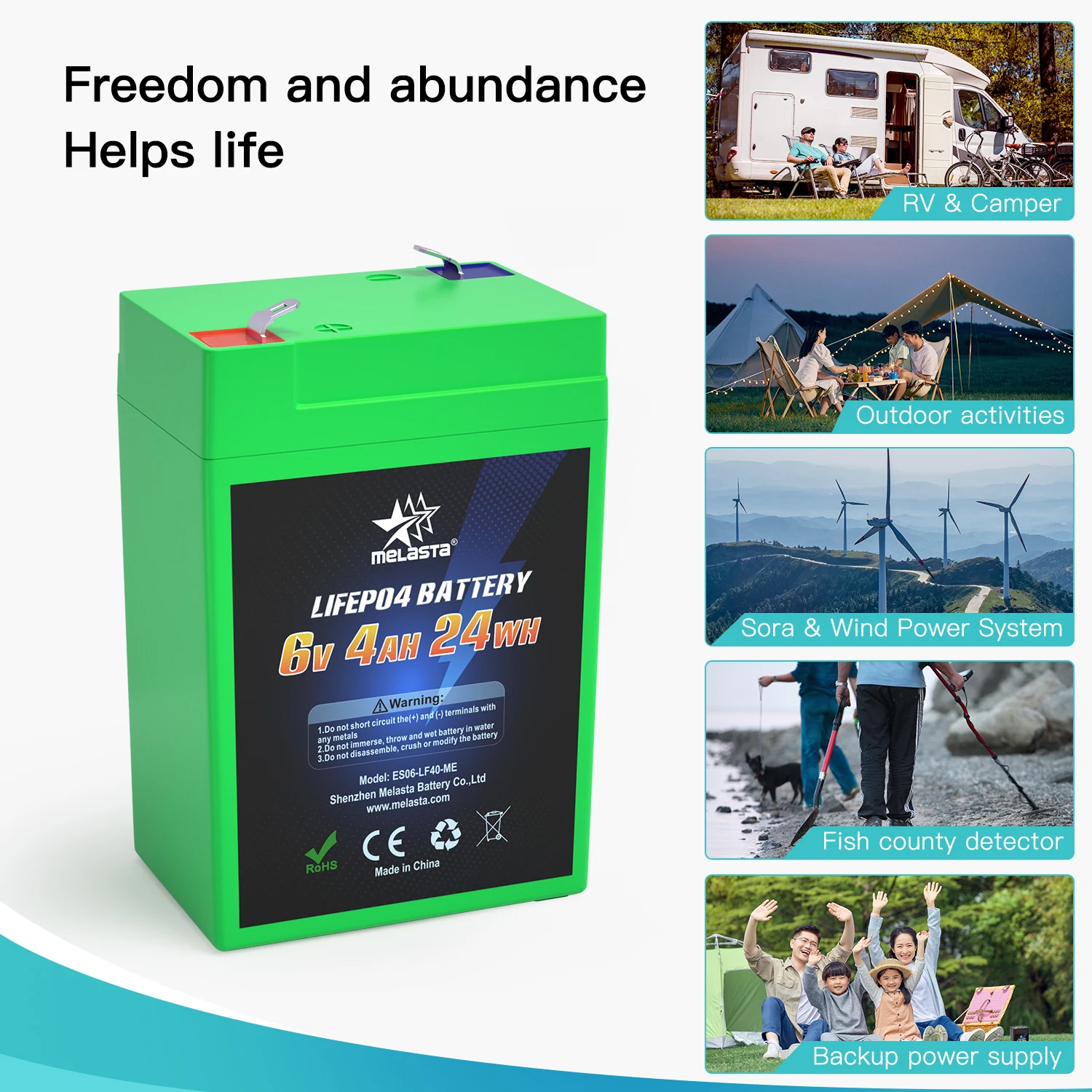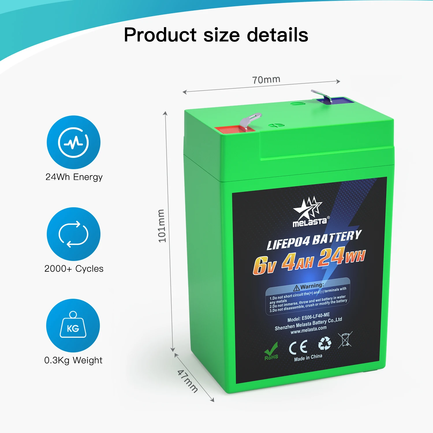 Melasta 6V 4Ah batterie rechargeable au lithium-fer-phosphate LiFePO4 2000cycles d’alimentation portable pour le camping en plein air