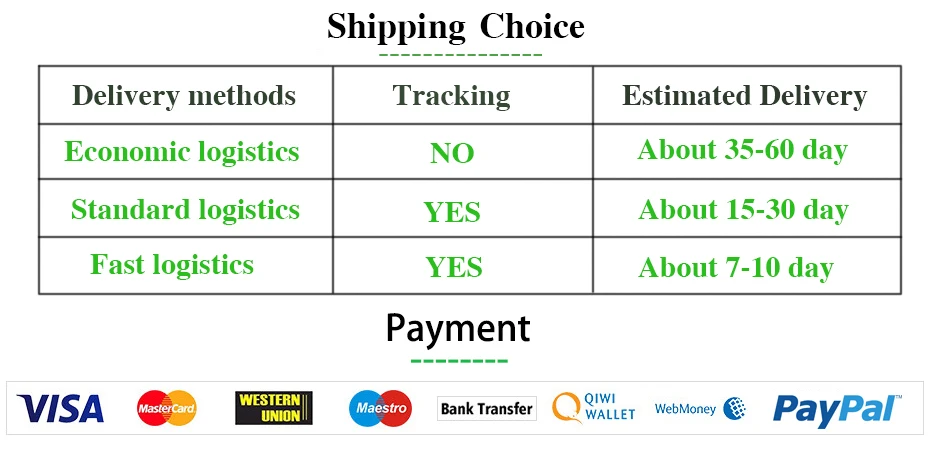 - Remboursement assuré si l’article n’arrive pas dans les 60 jours.