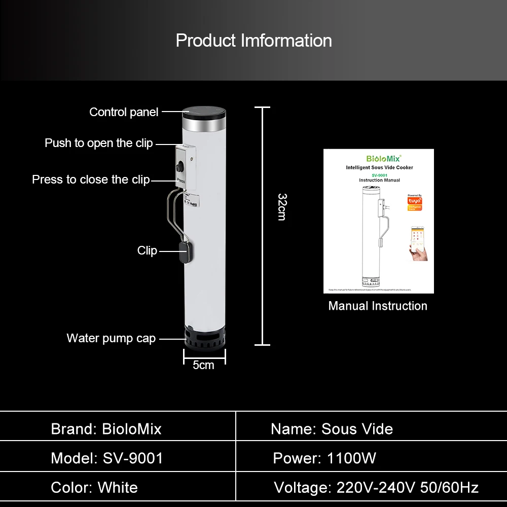 BioloMix-Cuiseur Sous Vide Intelligent de 4ème Génération, Étanche IPX7, Super Mince, Immersion Thermique, Cowculator avec Andrea Control est un choix idéal pour les amateurs de cuisine sous vide. Sa taille compacte et son design élégant en font un outil pratique et esthétiquement agréable dans votre cuisine.