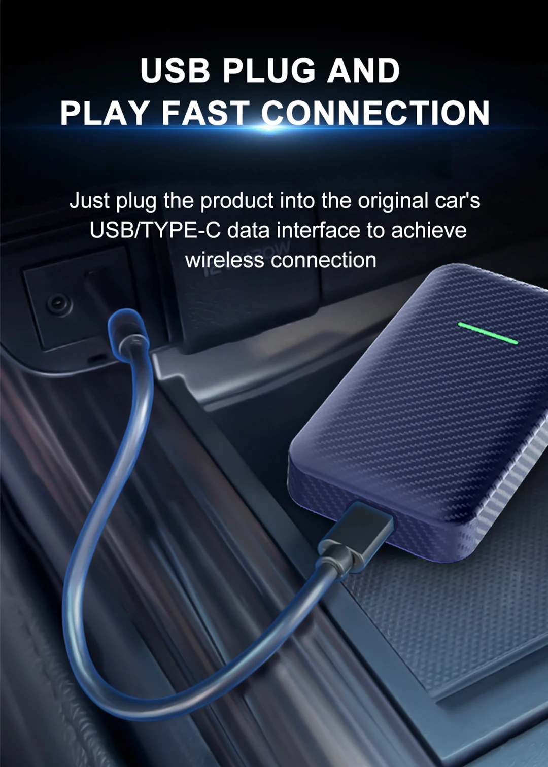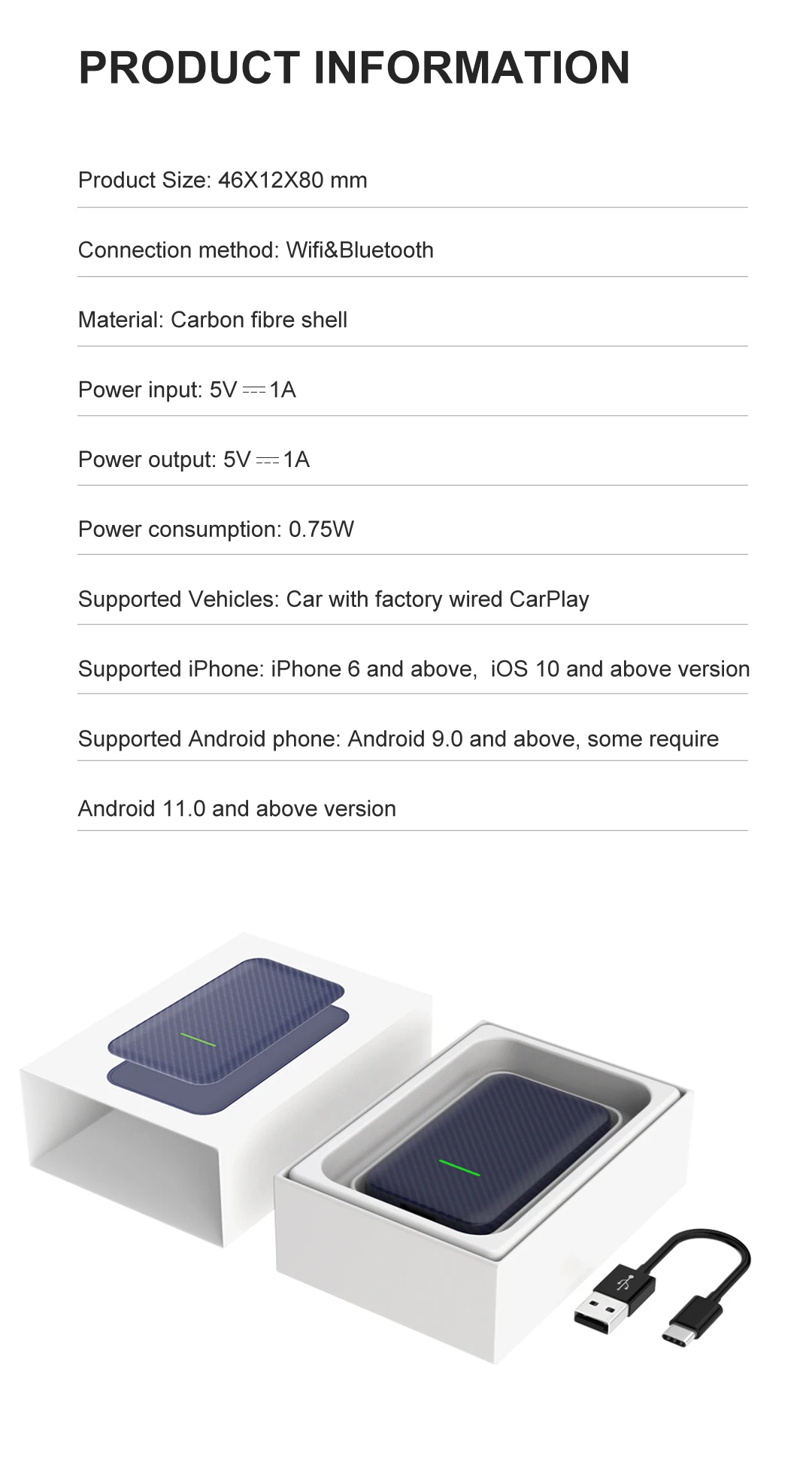 - Mini boîtier adaptateur CarPlay sans fil