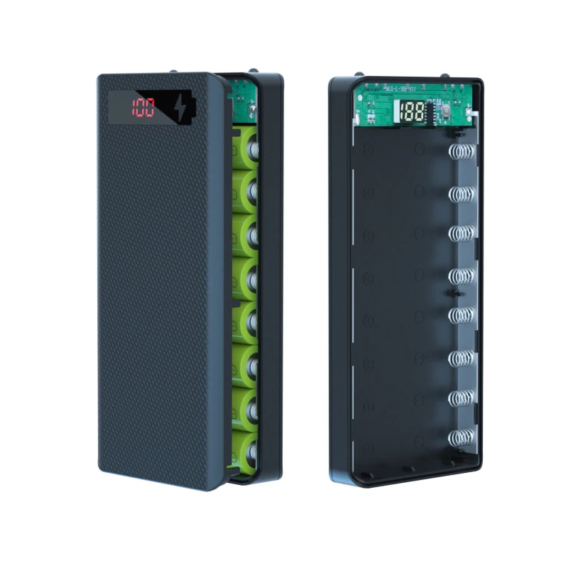 Le Boîtier de rangement pour batterie portable 8×18650, support de batterie, double USB type-c, coque L8 est équipé d’un nouveau système de contrôle d’entrée intelligent à double sortie rapide. Il peut accueillir huit batteries 18650 plates et dispose d’un affichage numérique LCD pour faciliter la lecture. De plus, il est doté d’une lumière électrique à deux mains qui peut être activée en effectuant un double clic sur l’interrupteur. La taille du boîtier est de 172*80*23mm et il offre une puissance maximale de 5V-2.1A.
