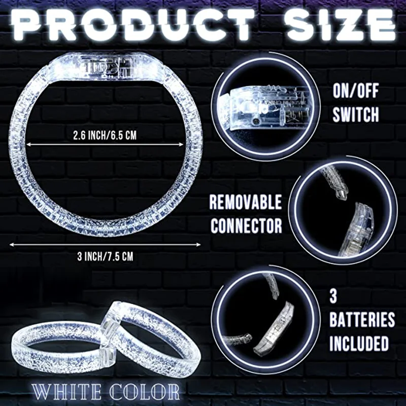 Les lumières éblouissantes avec bulle intégrée rendent ces bracelets encore plus attrayants dans la foule. Ils sont parfaits pour éclairer la fête et conviennent aux clubs, aux anniversaires, aux carnavals et aux discothèques. Ils sont également idéaux pour la marche et la course.