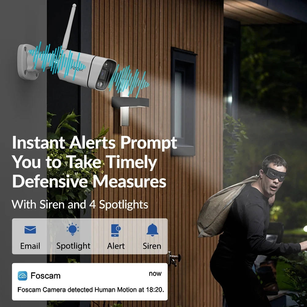 Grâce à la connectivité Wi-Fi double bande 5G / 2,4 GHz, cette caméra Foscam assure une transmission vidéo plus rapide et plus stable.