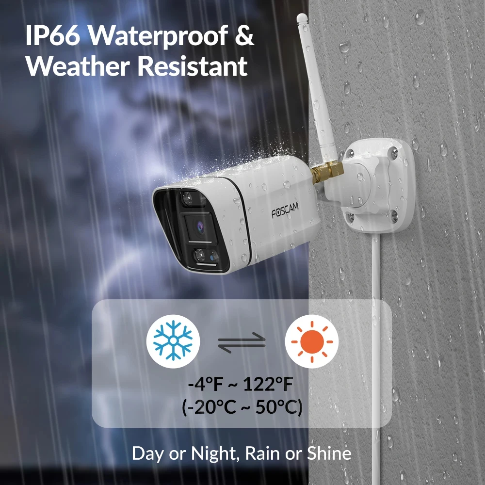 Cette caméra est équipée de projecteurs et de LED infrarouges offrant une vision nocturne couleur jusqu’à 66 pieds, fournissant des informations de surveillance critiques même dans l’obscurité.