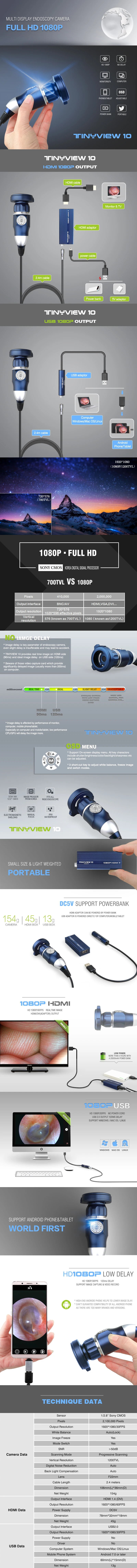 Voici les points importants à retenir du produit « Caméra endoscope portable médicale, sortie vidéo HDMI et USB, Full HD, 1080P »:
