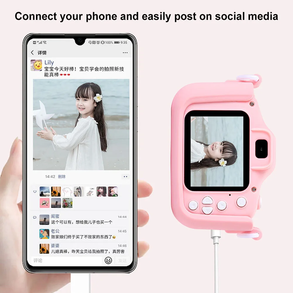 La caméra pour enfants avec étui en silicone est un appareil photo idéal pour les tout-petits. Elle est dotée d’un écran IPS 2.0″ qui permet aux enfants de prendre des selfies et de capturer des moments inoubliables de manière précise et vivante. L’appareil est livré avec un étui en silicone durable et sécurisé, qui offre une protection anti-choc et anti-chute. La caméra dispose également de deux lentilles HD, d’un affichage clair et sûr pour les yeux, et d’une batterie rechargeable. C’est un cadeau parfait pour les enfants créatifs.