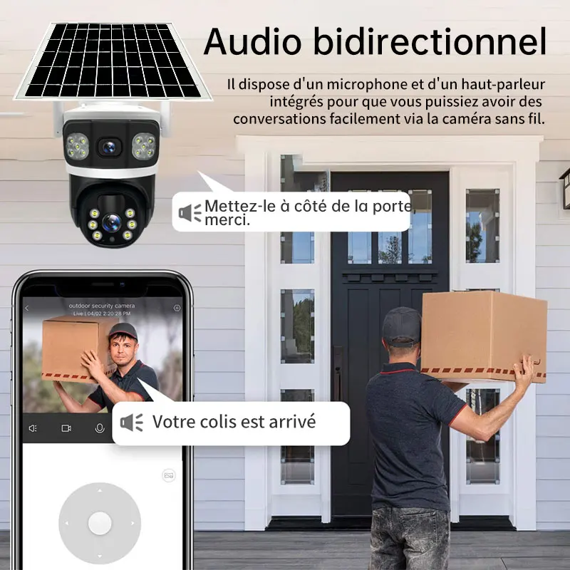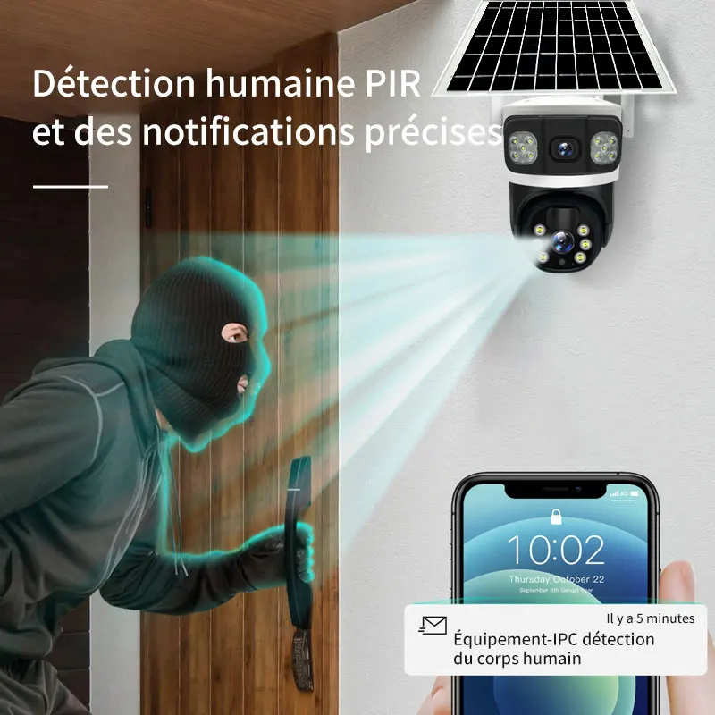 La caméra peut fonctionner en continu grâce à l’alimentation solaire, offrant une autonomie illimitée.
