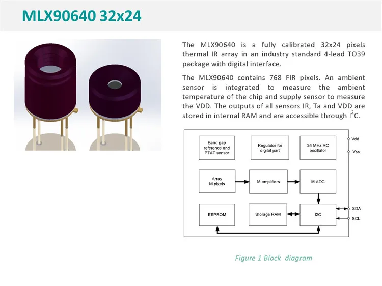 L’interface I2C d’origine de mlx90640 est conservée et la puce du capteur peut être directement exploitée par un MCU externe (PS est connecté à GND).