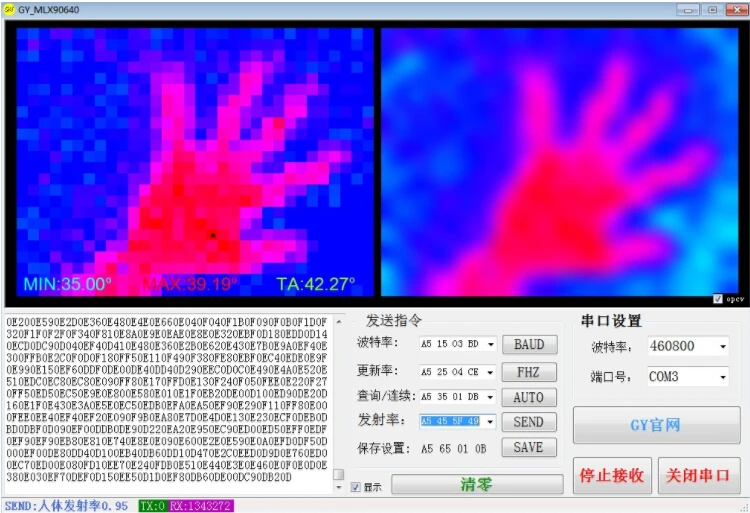 Le module contient un micro-ordinateur monopuce, le port série produit directement 768 données de température, et usb tourne ttl directement à l’ordinateur pour voir les données.