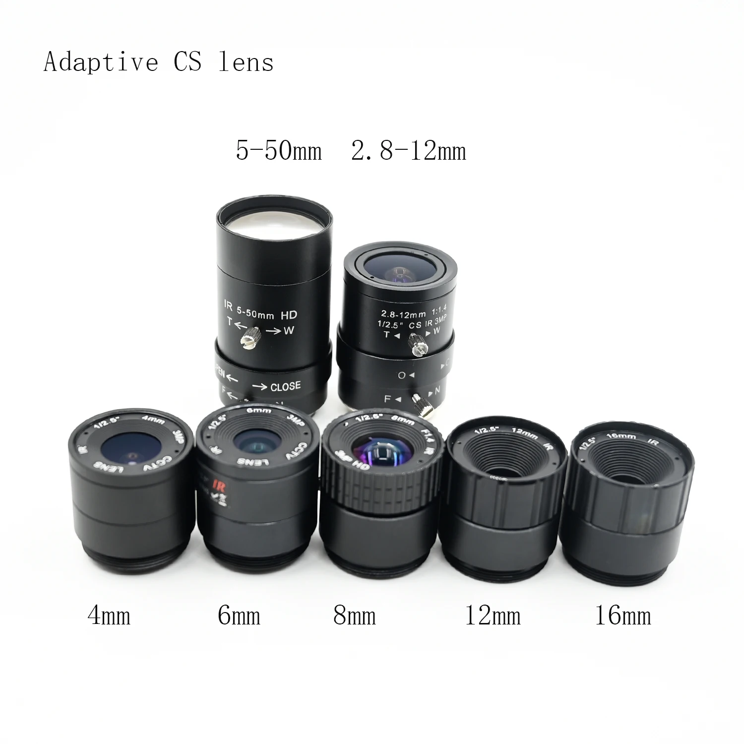 Objectif à monture CS varifocale manuelle HD 2.8-12mm et 5-50mm de haute qualité, objectif CS à mise au point fixe 4/6/8/12/16mm, vous fournit un détail d’image ultra-clair pour refléter un environnement plus réaliste.