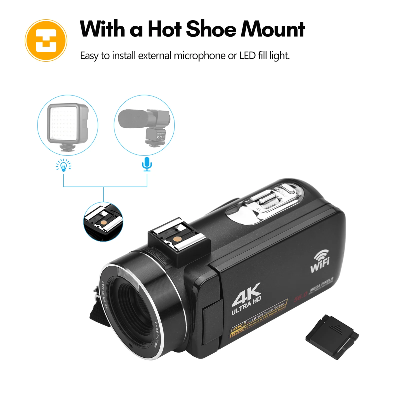 - Caméra vidéo numérique portable 4K: Adopte le capteur d’image CMOS, caractéristiques max. Haute résolution vidéo 4K/30fps et résolution d’image super claire 56MP(interpolation); léger et portable
