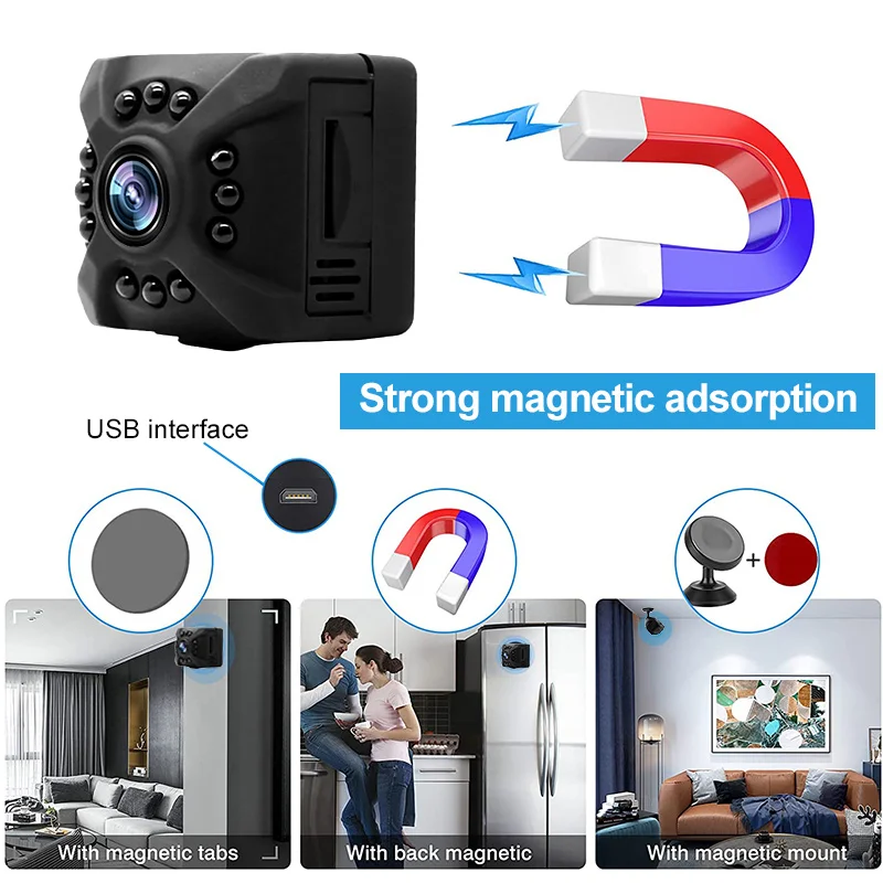 La caméra est incroyablement petite avec une taille de seulement 1.5 pouces, et sa conception magnétique lui permet d’être installée facilement partout, que ce soit dans une chambre de bébé, un salon, une porte ou même une voiture.