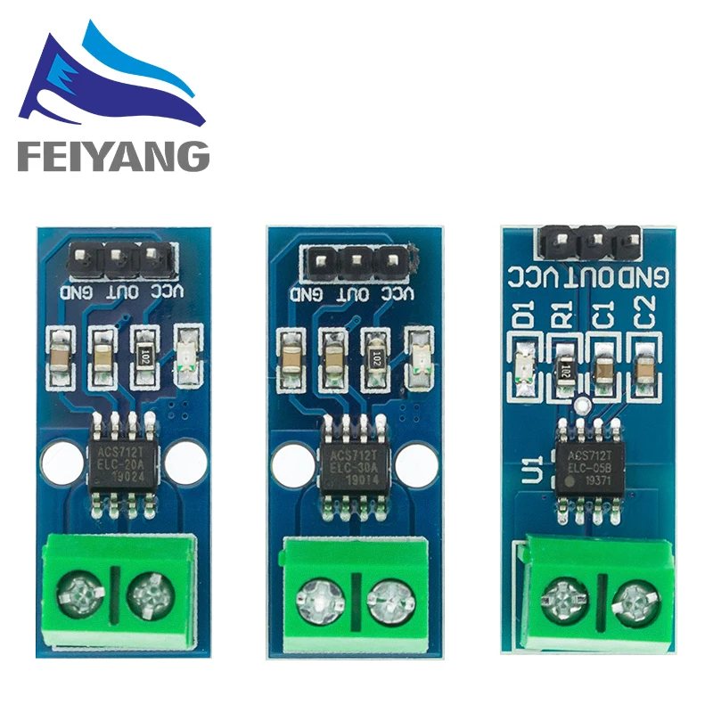 Le capteur de courant utilise les puces ACS712ELC-05B, ACS712ELC-20A et ACS712ELC-30A pour différentes plages de mesure.