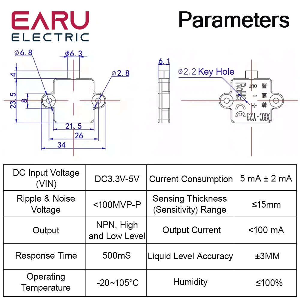 | Courant de sortie: ≤ 100mA | 4. Forte compatibilité, pénètre dans divers récipients non métalliques, tels que les récipients en plastique, en verre, en céramique et autres, et la distance de détection peut atteindre 5mm. |