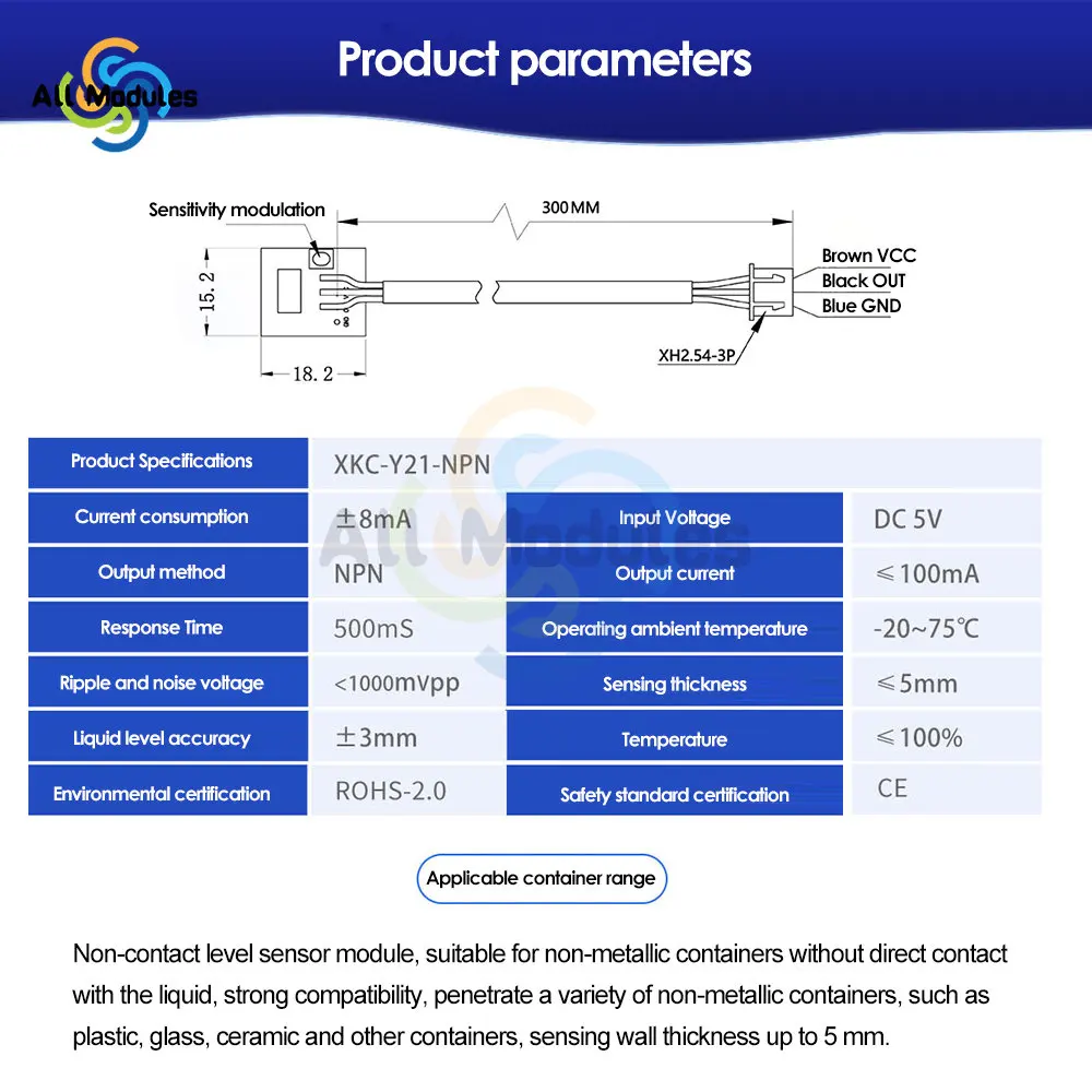 Le capteur de niveau d’eau sans contact XKC Y25 est un capteur de niveau de liquide de haute précision. Fabriqué avec des matériaux de qualité, il est durable et offre une grande stabilité. Ce capteur fonctionne avec une tension d’entrée de DC 5V et peut détecter la présence de liquide avec une précision de ±3mm. Il est donc idéal pour une large gamme d’applications.