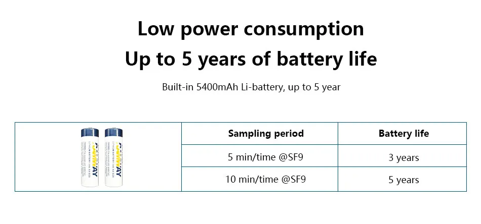 - Batterie Li intégrée de 5400mAh, jusqu’à 5 ans
