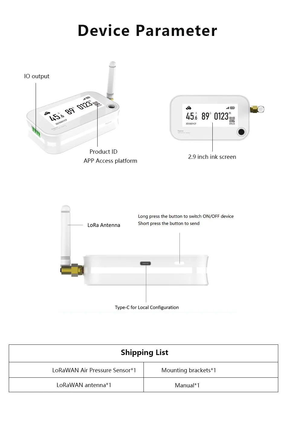 Le Rejeee-Capteur de pression d’air LoRaWAN est un produit innovant et performant. Ses caractéristiques clés, telles que sa compatibilité avec TTN et Helium, sa batterie intégrée de 5400mAh offrant jusqu’à 5 ans d’autonomie, et son affichage d’E-papier de 2.9 pouces en font un choix idéal pour de nombreuses applications.