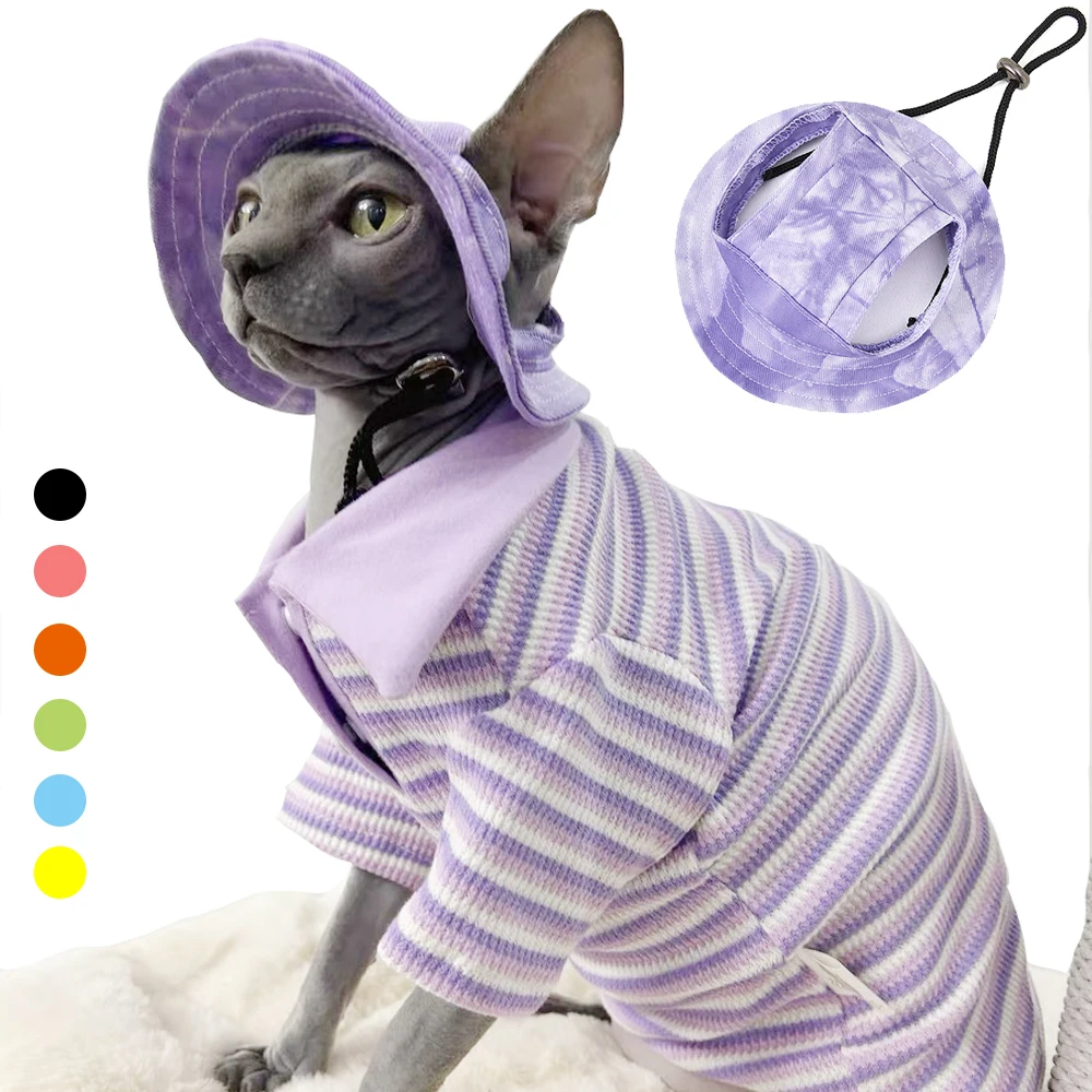 Le chapeau de chat en coton réglable avec trous d’oreille est parfait pour les sphynx, les sphinx, les chats sans poils, les chatons, les devon rex lors de vos voyages et randonnées. Fabriqué en coton, il convient à toutes les saisons et est adapté aux chats, chiots et petits chiens. Le paquet comprend 1 vêtement.