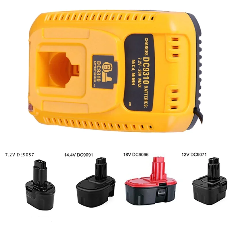 Réponse: Ce chargeur est compatible avec les batteries Dewalt 7.2V NiCad & NiMh DE9057, DE9085, DW9057, les batteries Dewalt 12V 152250-27, 397745-01, DC9071, DE9037, DE9071, DE9072, DE9074, DE9075, DW9071, DW9072, les batteries Dewalt 14.4V DC9091, DE9038, DE9091, DE9092, DE9094, DE9502, DW9091, DW9094, et les batteries Dewalt 18V DC9096, DE9039, DE9095, DE9096, DE9098, DC9098, DW9096, DW9095, DW9098.