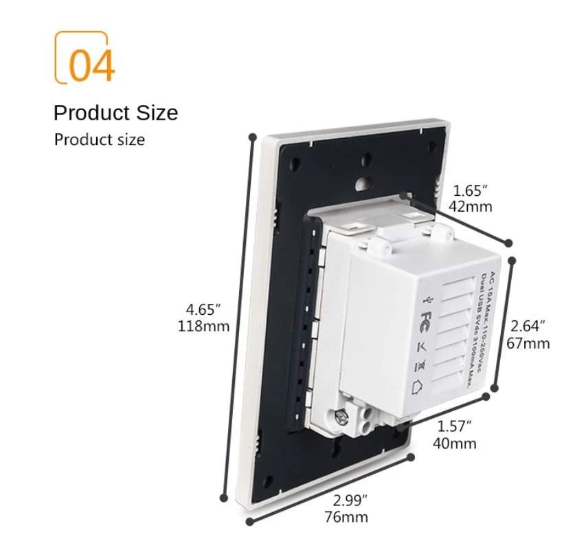 | Options de charge rapide 2.1A et 3.1A | Pas de protection contre les surtensions |