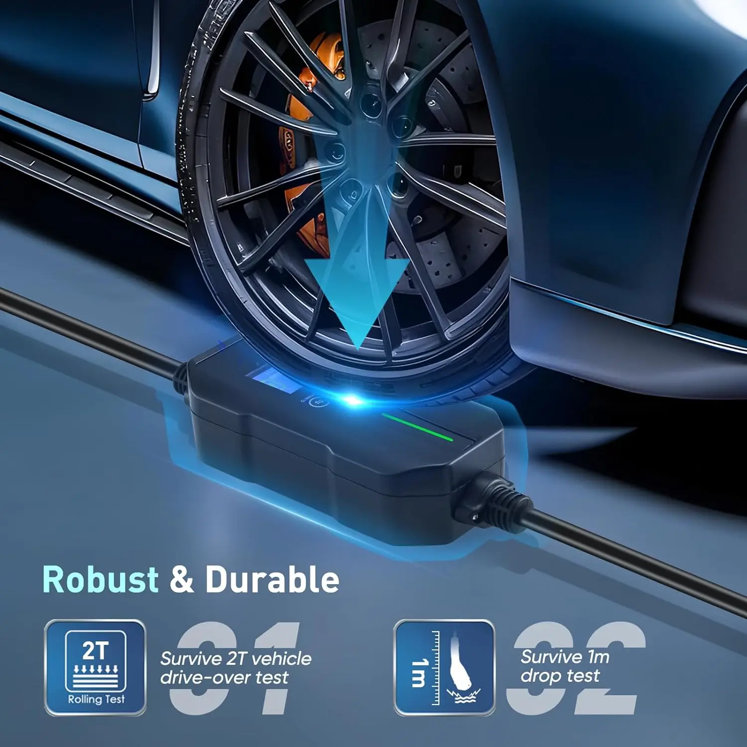Le chargeur est doté d’une coque ABS robuste, qui a réussi avec succès le test d’écrasement par une voiture de 2 tonnes et le test de chute d’1 mètre. Le câble TPU flexible a été plié et testé plus de 10 000 fois, ce qui garantit sa résistance à l’usure et sa durabilité. Il convient parfaitement à une utilisation fréquente et à long terme.