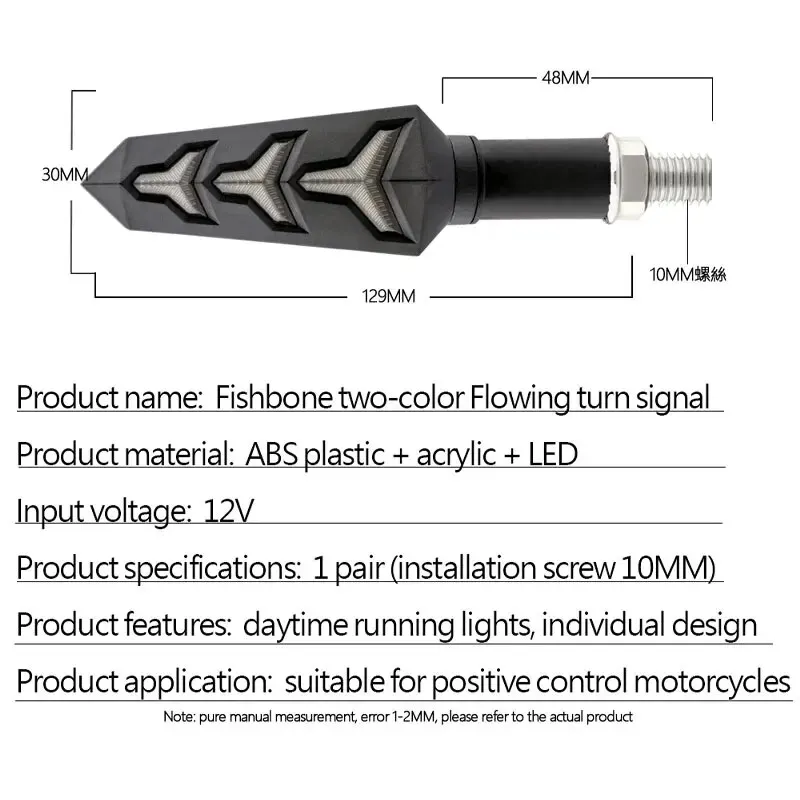 Nous pensons que les 2pcs Moto Clignotant Lumière Clignotant LED Bendable Fluing Fishbone Indicateur Lumières Feux de jour 12v sont un excellent accessoire pour votre moto. Le design unique en forme de poisson flexible et fluide rend votre moto très attrayante sur la route. De plus, les feux de jour vous rendent visible pour les autres conducteurs, ce qui améliore votre sécurité lors de la conduite. Le fait que ces clignotants fonctionnent avec une alimentation 12V les rend compatibles avec la plupart des motos, ce qui est très pratique. Enfin, la luminosité des clignotants assure des indications claires et visibles aux autres conducteurs, ce qui facilite la navigation dans la circulation. Globalement, nous recommandons vivement les 2pcs Moto Clignotant Lumière Clignotant LED Bendable Fluing Fishbone Indicateur Lumières Feux de jour 12v pour tous les motards.